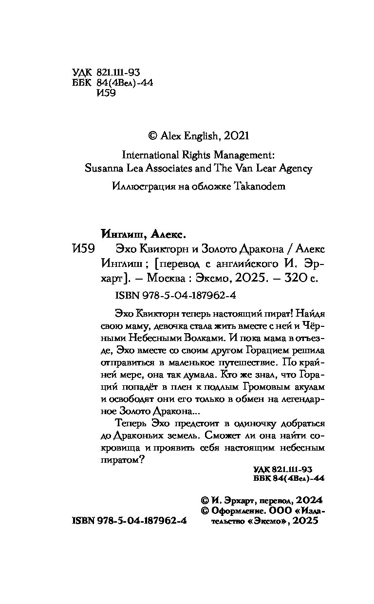 Эхо Квикторн теперь настоящий пират! Найдя свою маму, девочка стала жить вместе с ней и Чёрными Небесными Волками. И, пока мама в отъезде, Эхо вместе со своим другом Горацием решила отправиться в маленькое путешествие. По крайней мере, она так думала. Кто же знал, что Гораций попадет в плен к подлым Громовым акулам и освободят они его только в обмен на легендарное золото дракона…
