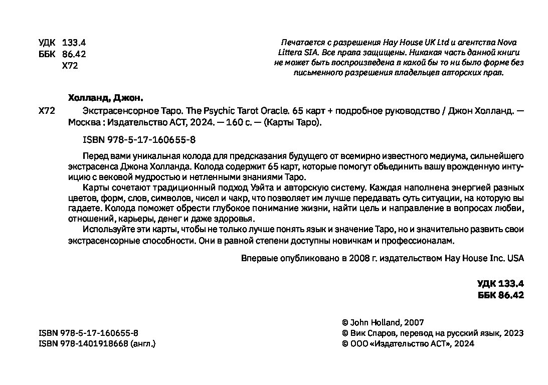 — «Экстрасенсорное Таро. The Psychic Tarot Oracle. 65 карт + подробное руководство» Холланд Джон