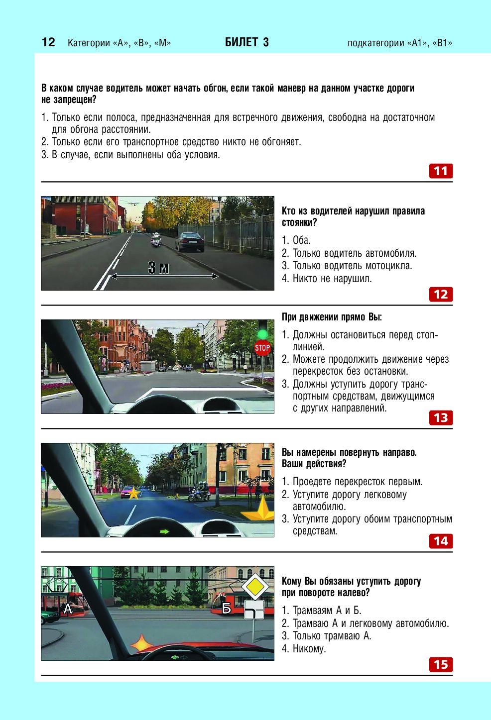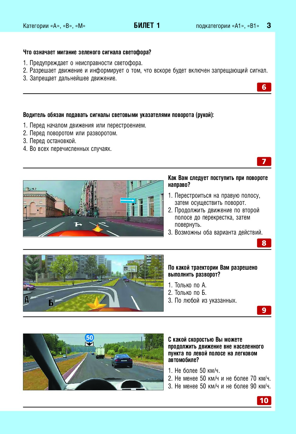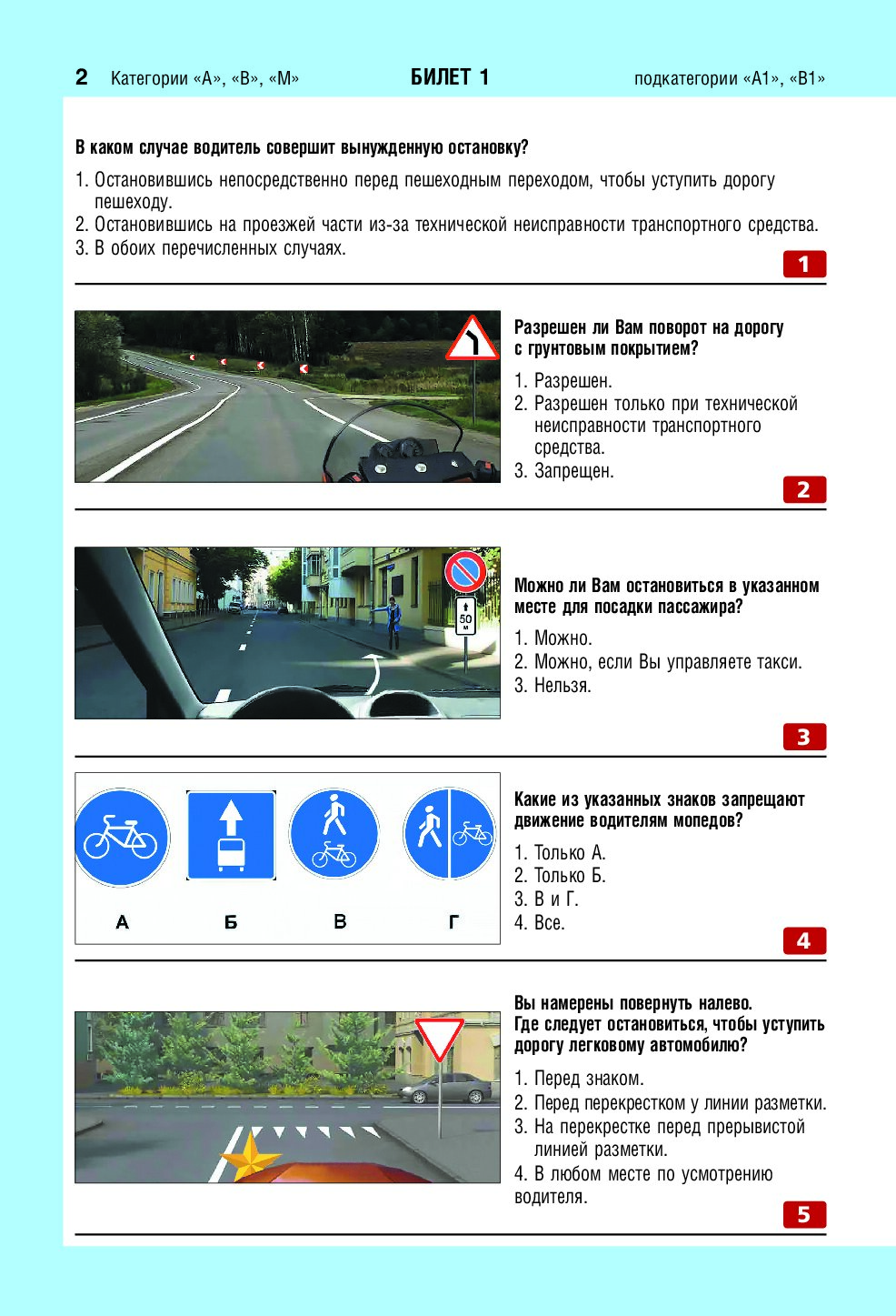 Экзаменационные билеты для сдачи экзаменов на права категорий А, В и M, подкатегорий A1, B1 (с изм. на 2026 год)
