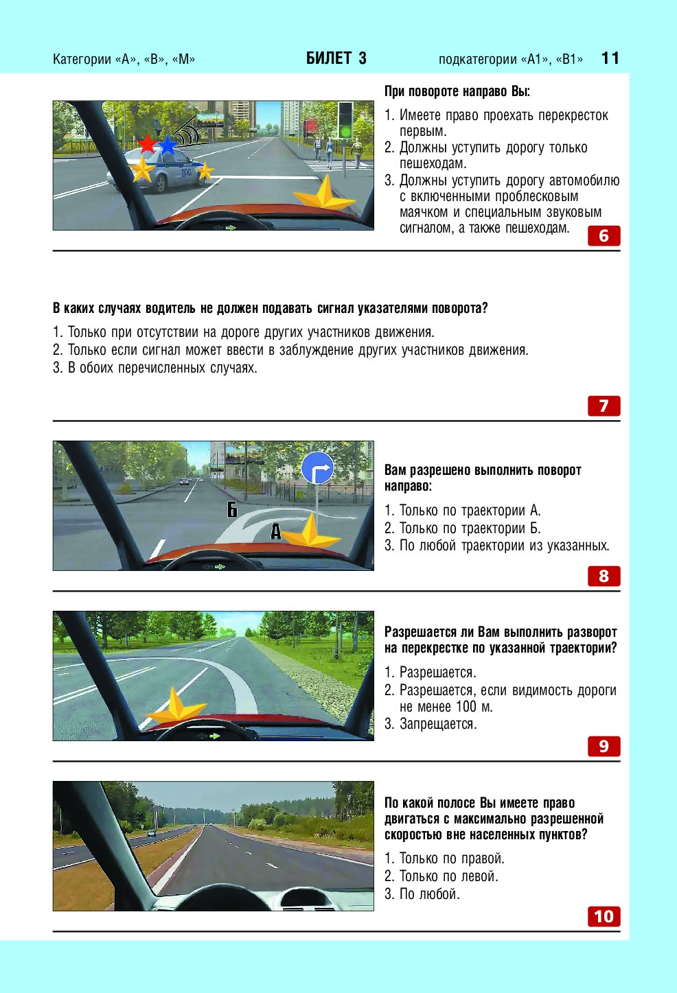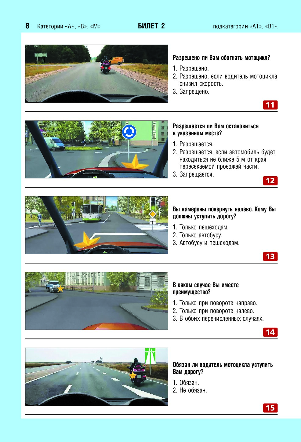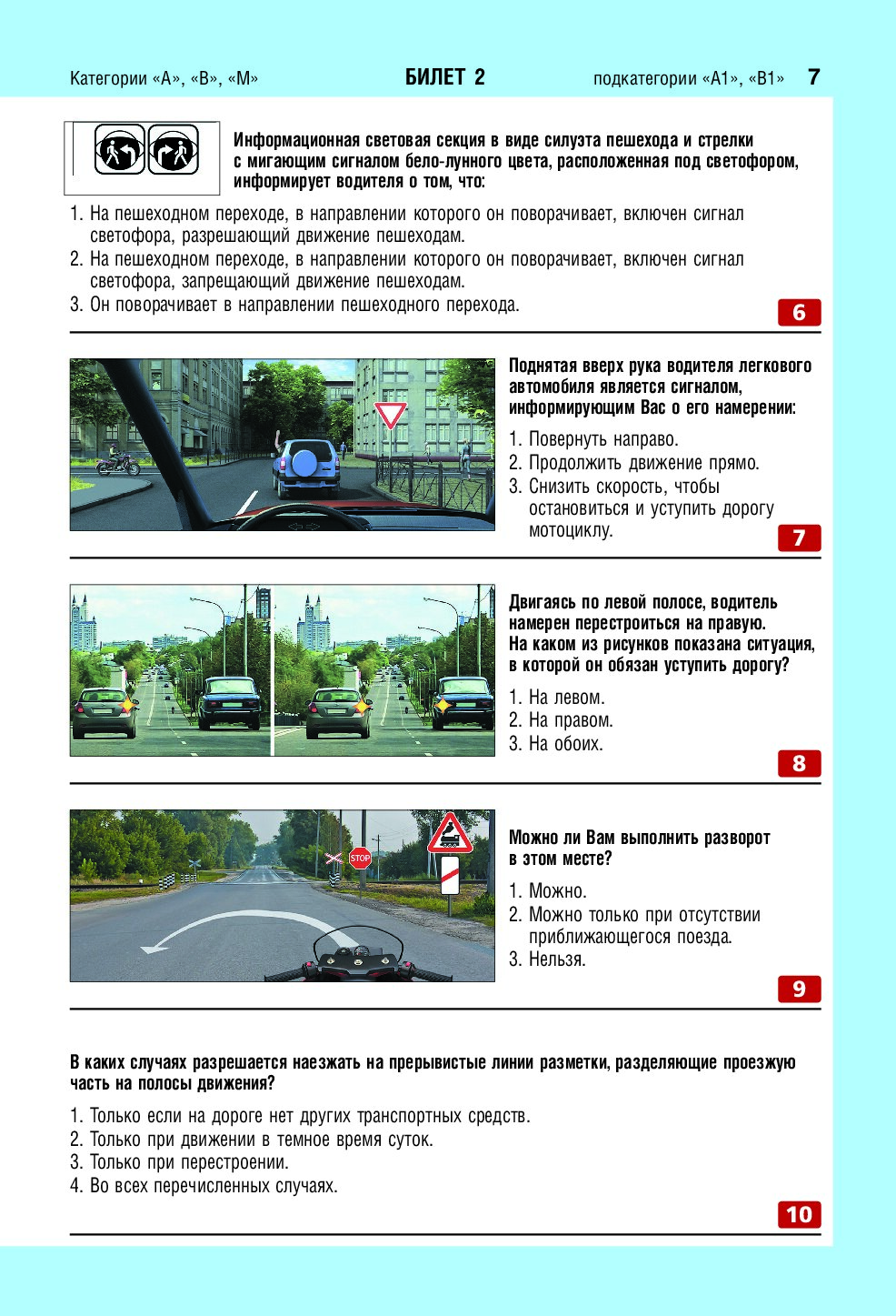 Экзаменационные билеты для сдачи экзаменов на права категорий А, В и M, подкатегорий A1, B1 (с изм. на 2026 год)