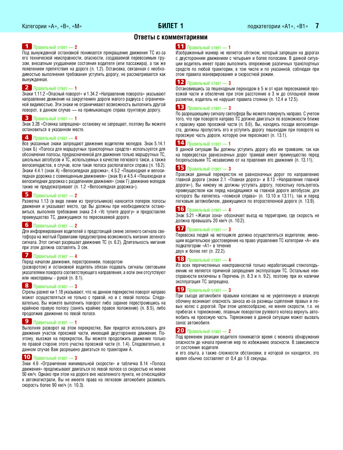 Экзаменационные билеты для сдачи экзаменов на права категорий А, В, М подкатегорий А1 В1 с комментариями на 2026 год
