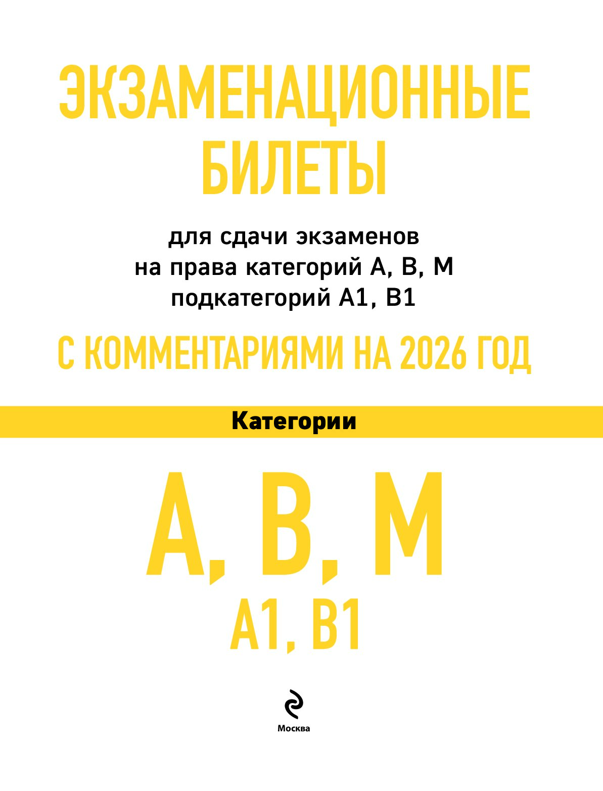 — «Экзаменационные билеты для сдачи экзаменов на права категорий А, В, М подкатегорий А1 В1 с комментариями на 2026 год» <не указано>