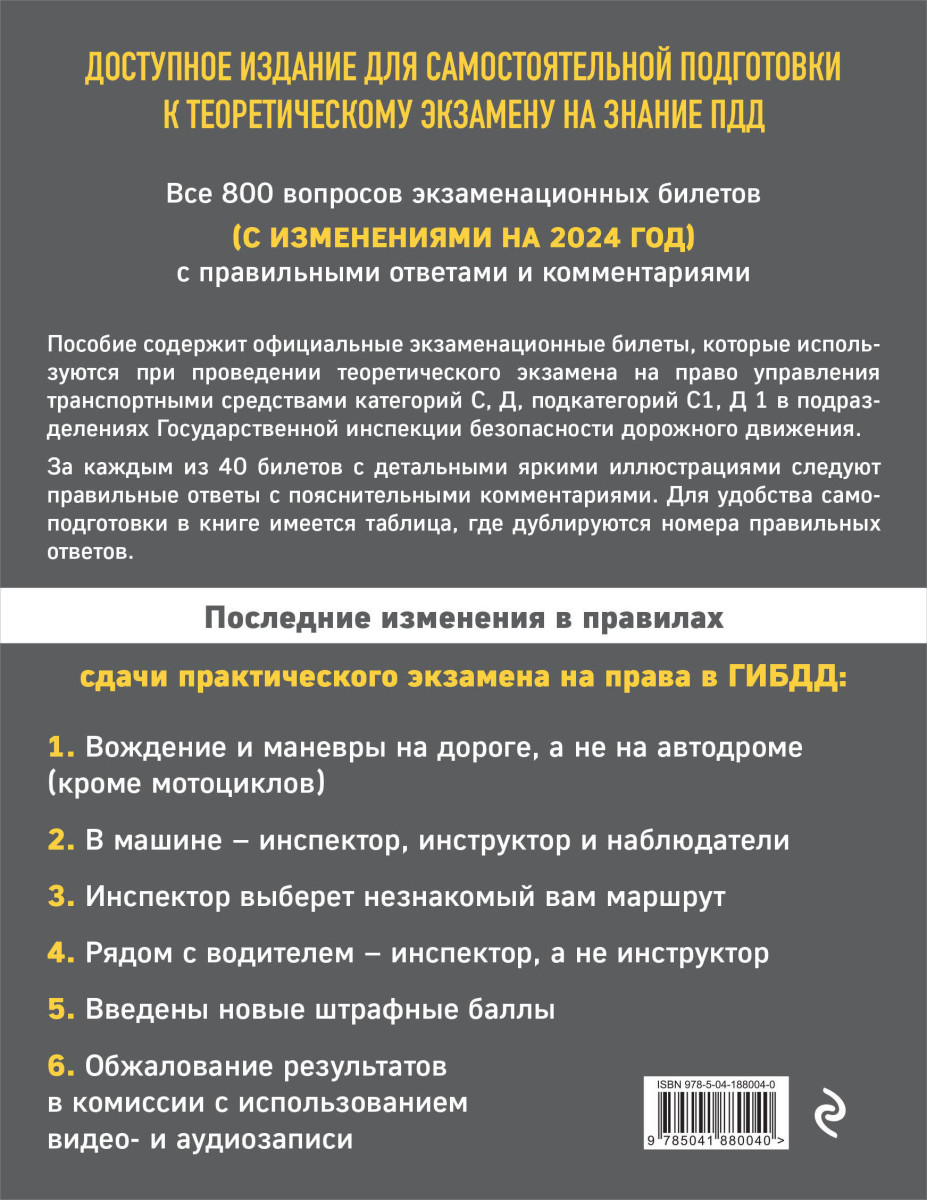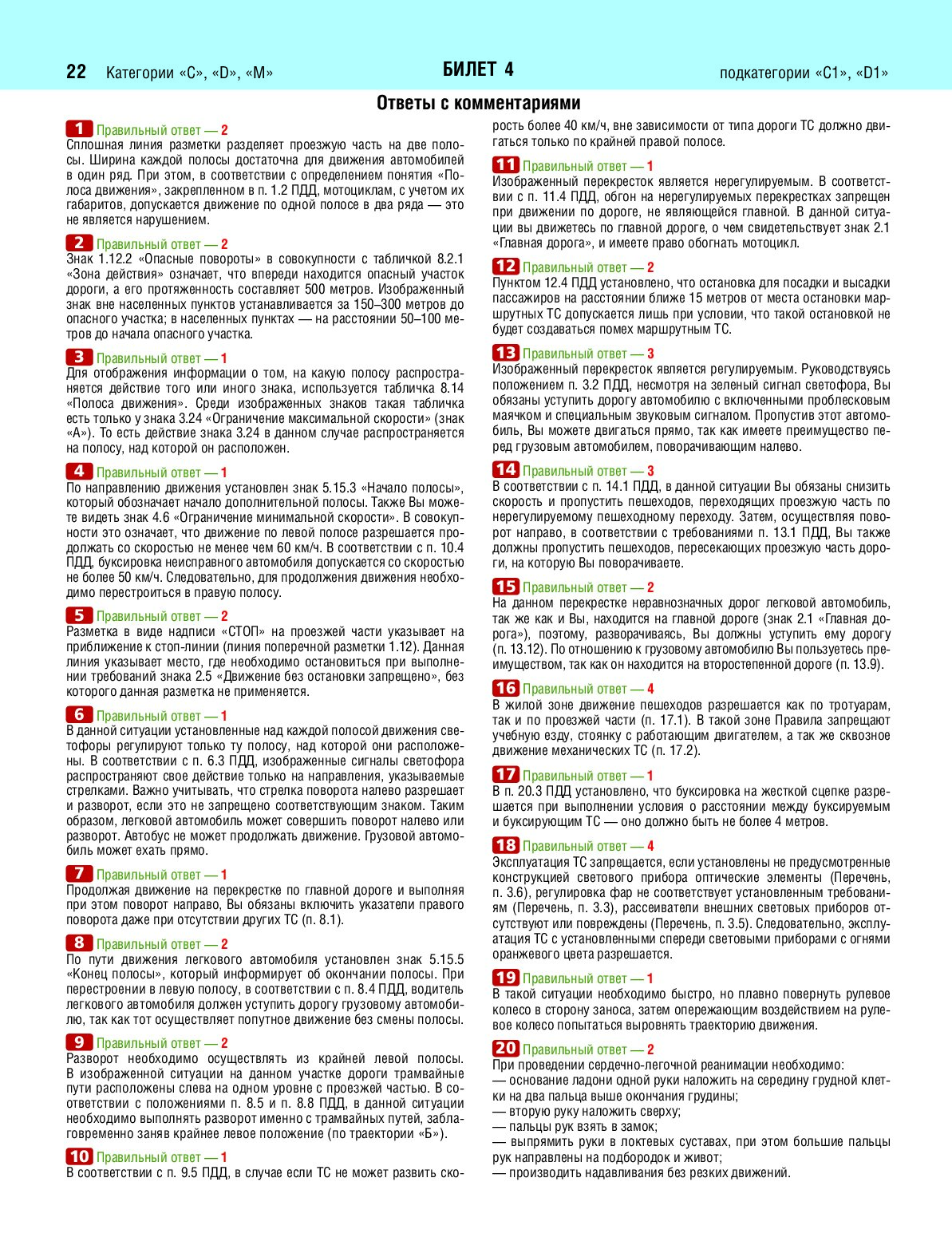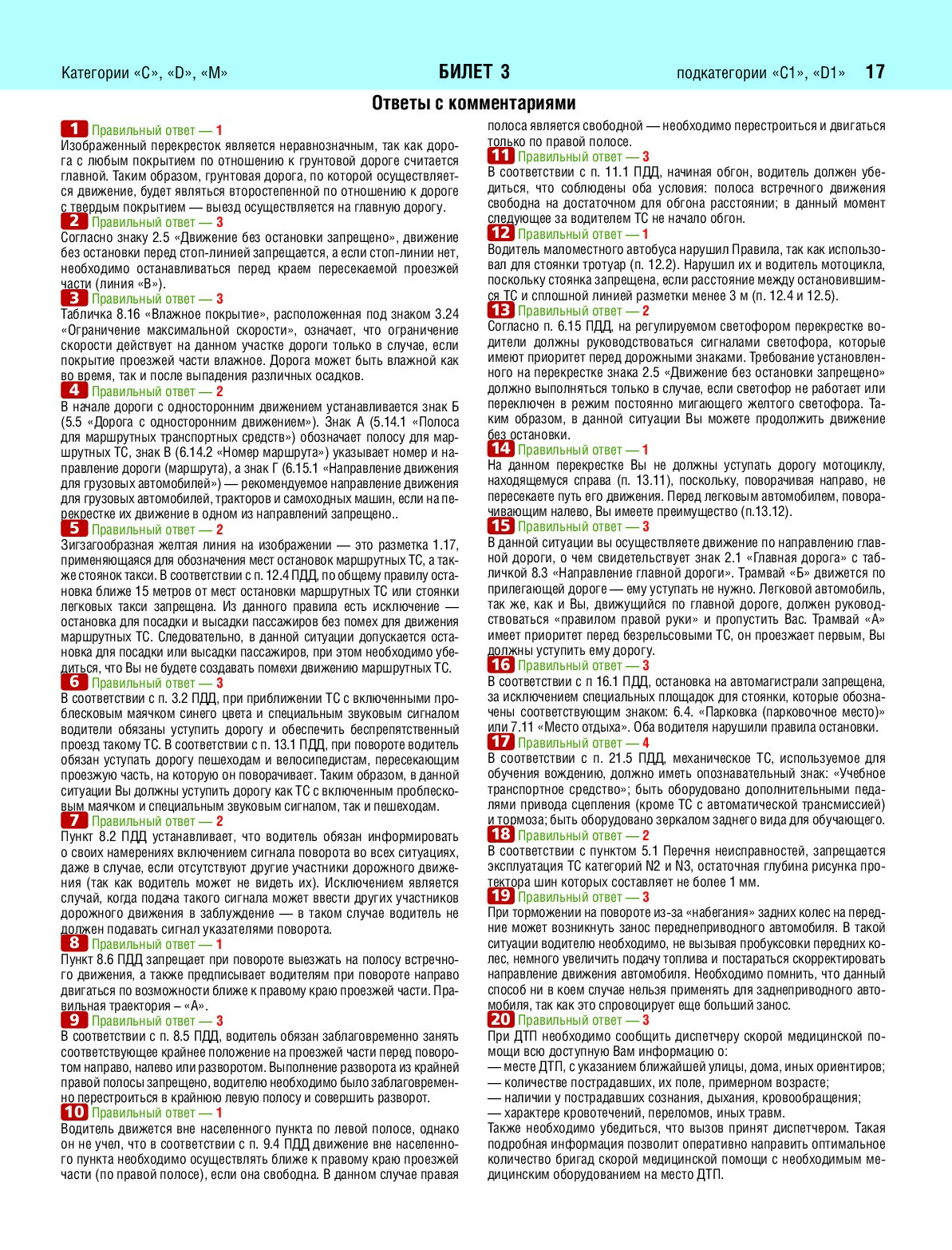 За каждым из 40 билетов с детальными яркими иллюстрациями следуют правильные ответы с пояснительными комментариями. Для удобства самоподготовки в книге имеется таблица, где дублируются номера правильных ответов.