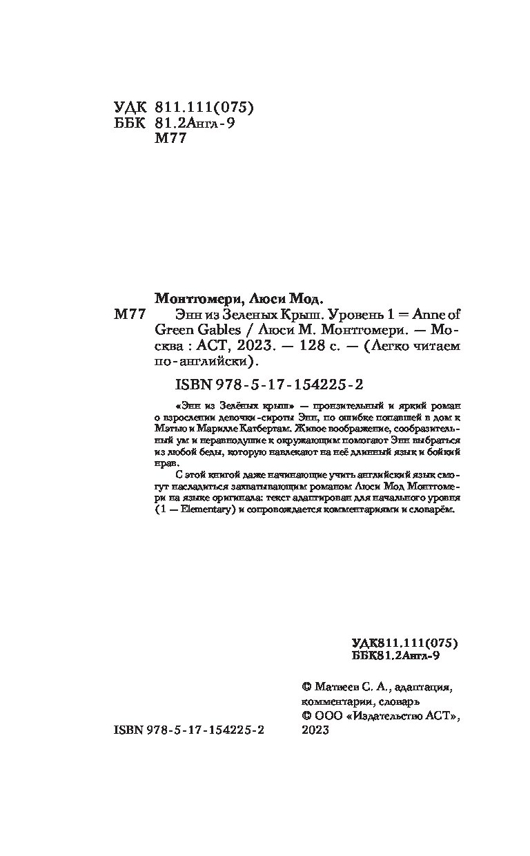 Энн из Зеленых Крыш. Уровень 1 = Anne of Green Gables