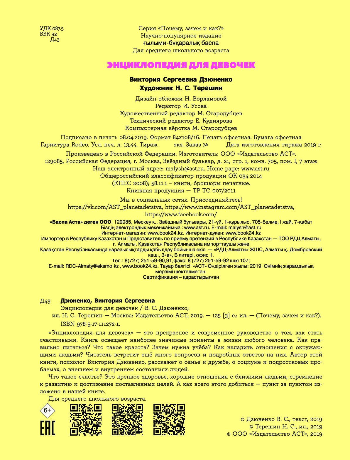 —Книга «Энциклопедия для девочек» Дзюненко В.С.