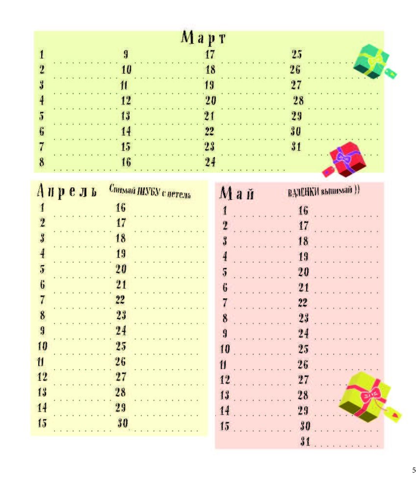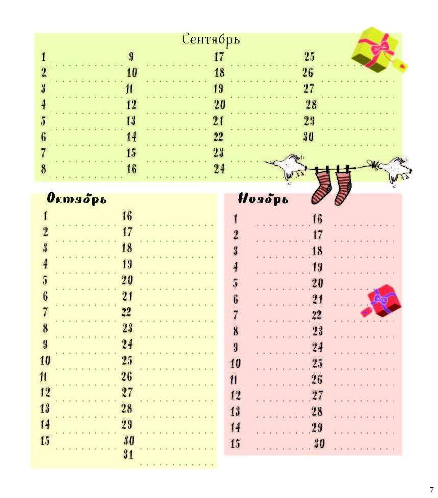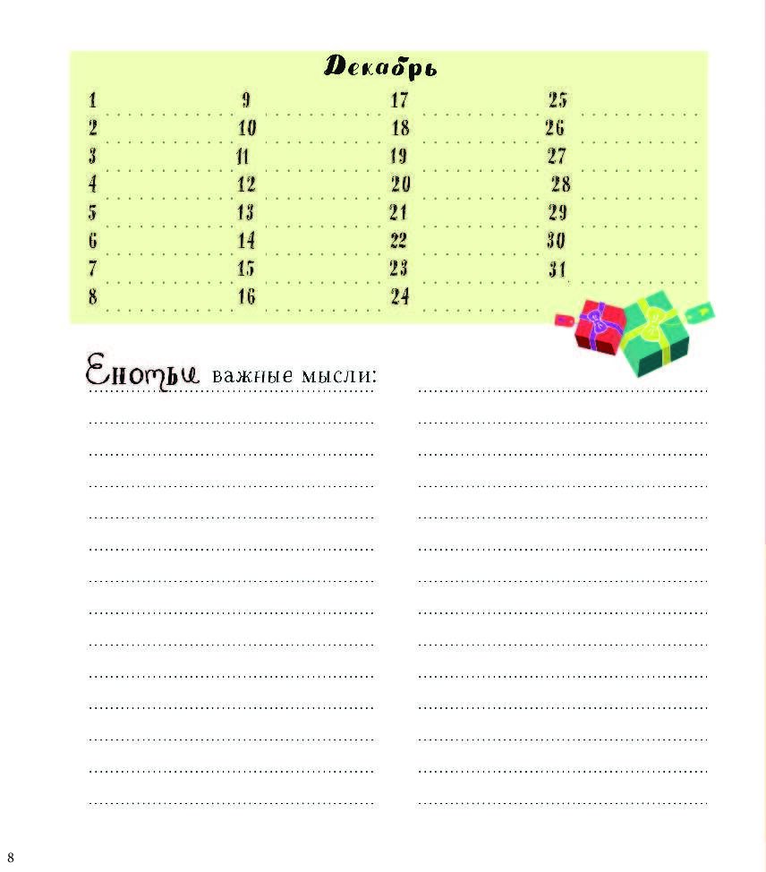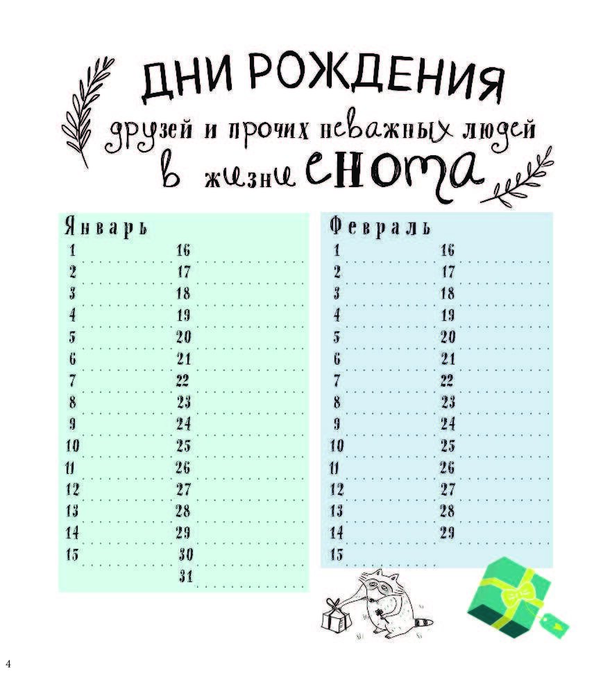 Также в ежедневнике есть места для записи планов на месяц, год, дней рождений всех твоих неважных друзей и просто для того, чтобы расписать ручку.