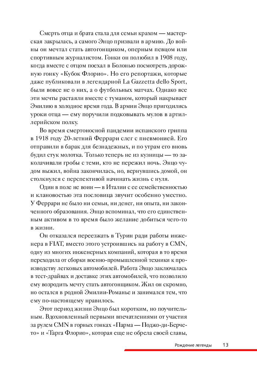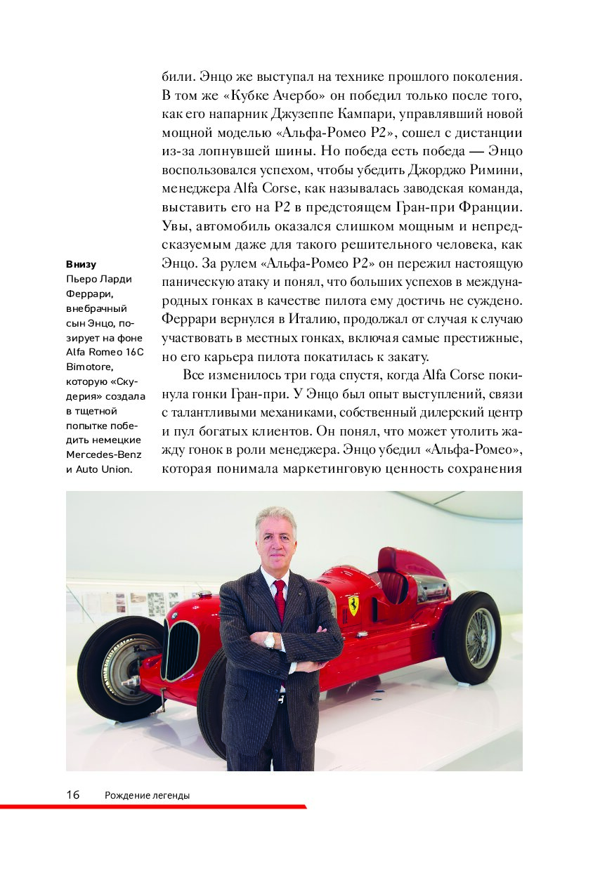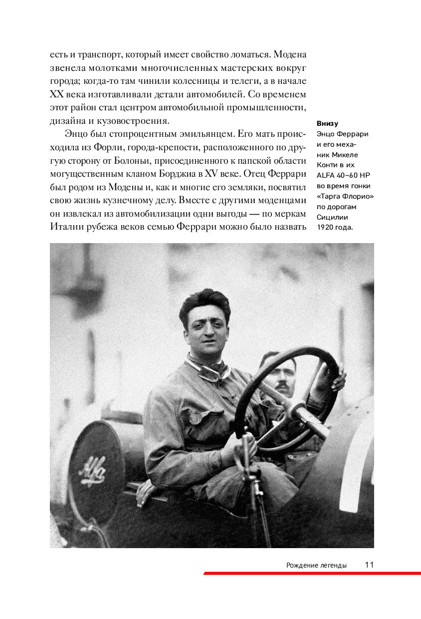 Книга, которую вы держите в руках, — это ода страсти, скорости, дизайну и безупречному мастерству, которые сделали Ferrari синонимом совершенства. От первых дней в мастерской отца Энцо Феррари до триумфов на трассах «Формулы-1» и культовых моделей, которые стали символом инженерного гения их создателя — вас ждет вдохновляющее путешествие по легендарной истории одного из самых престижных автомобильных брендов в мире. Вы окунетесь в богатую и захватывающую хронику жизни человека, превратившего автомобиль в мечту миллионов. Роскошные фотографии, которые сопровождают рассказ, делают эту книгу настоящим сокровищем для автолюбителей, коллекционеров и всех, кто восхищается искусством на четырех колесах.