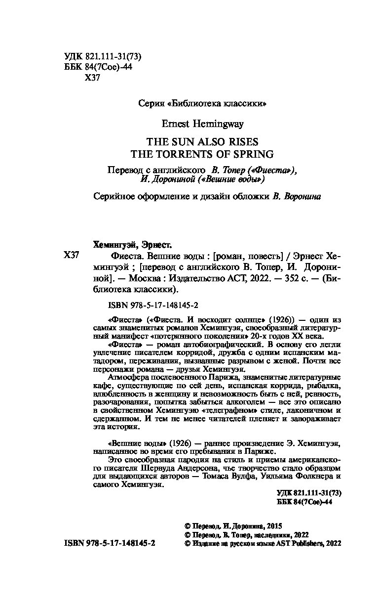 — «Фиеста. Вешние воды» Хемингуэй Э.