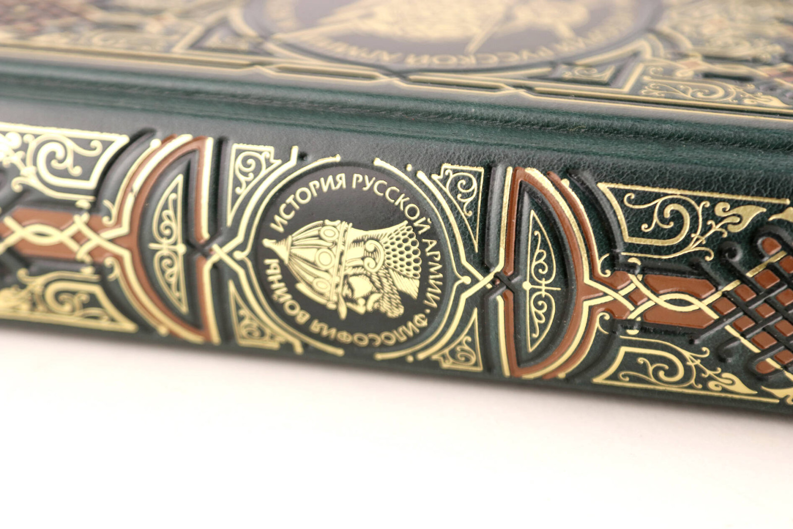Философия войны. История русской армии. Книга в коллекционном кожаном инкрустированном переплете ручной работы с окрашенным и золочёным обрезом