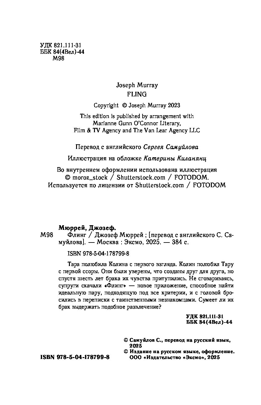 Тара полюбила Колина с первого взгляда. Колин полюбил Тару с первой ссоры. Они были уверены, что созданы друг для друга, но спустя шесть лет брака их чувства притупились. Не сговариваясь, супруги скачали «Флинг» — новое приложение, способное найти идеальную пару, подходящую под все критерии, и с головой бросились в переписки с таинственными незнакомцами. Сумеет ли их брак выдержать подобное развлечение?