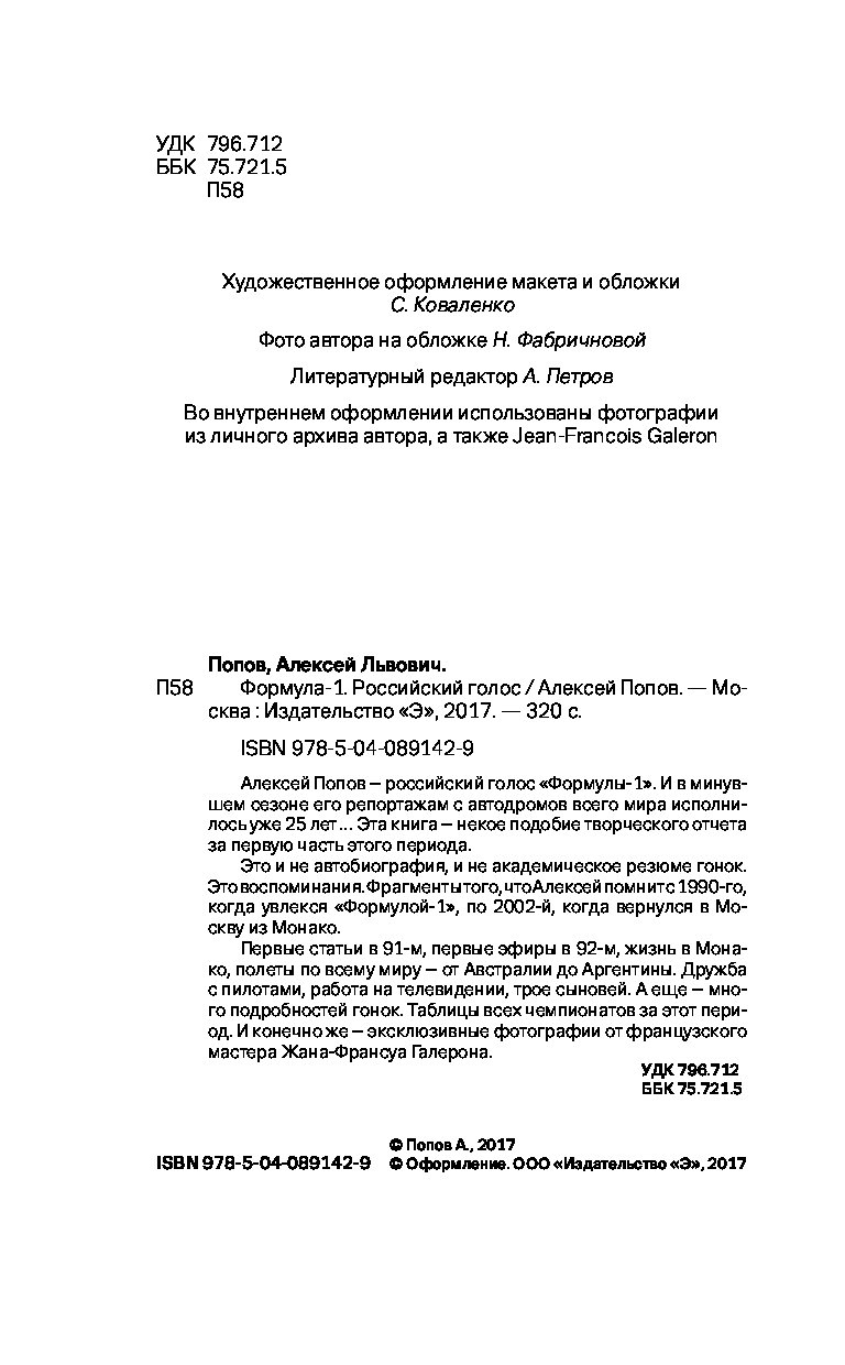 —Книга «Формула 1. Российский голос» Попов А.Л.
