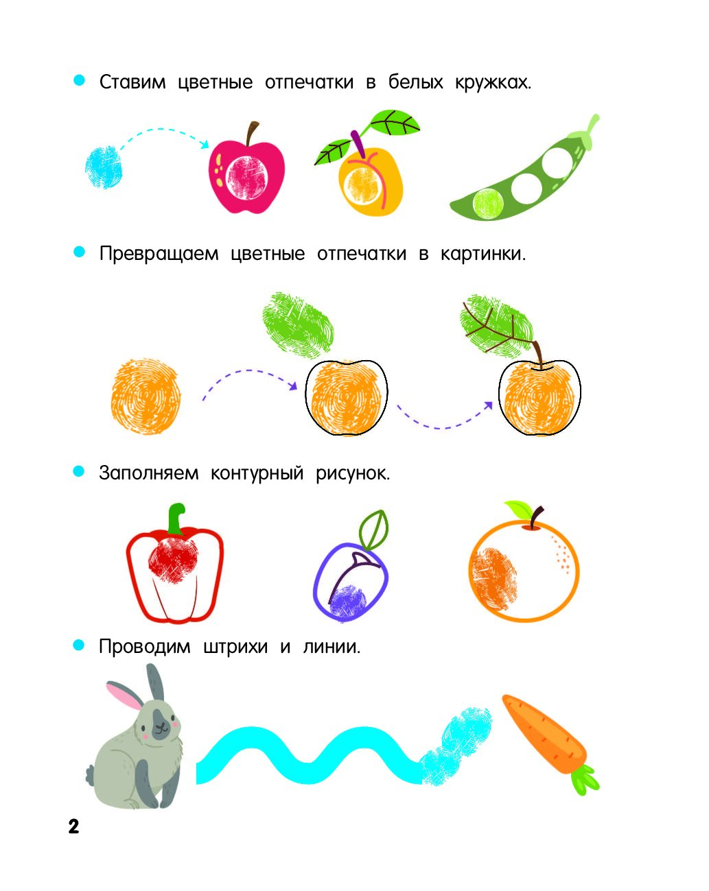 Фрукты и овощи. Рисуем пальчиками. Раскраска с заданиями