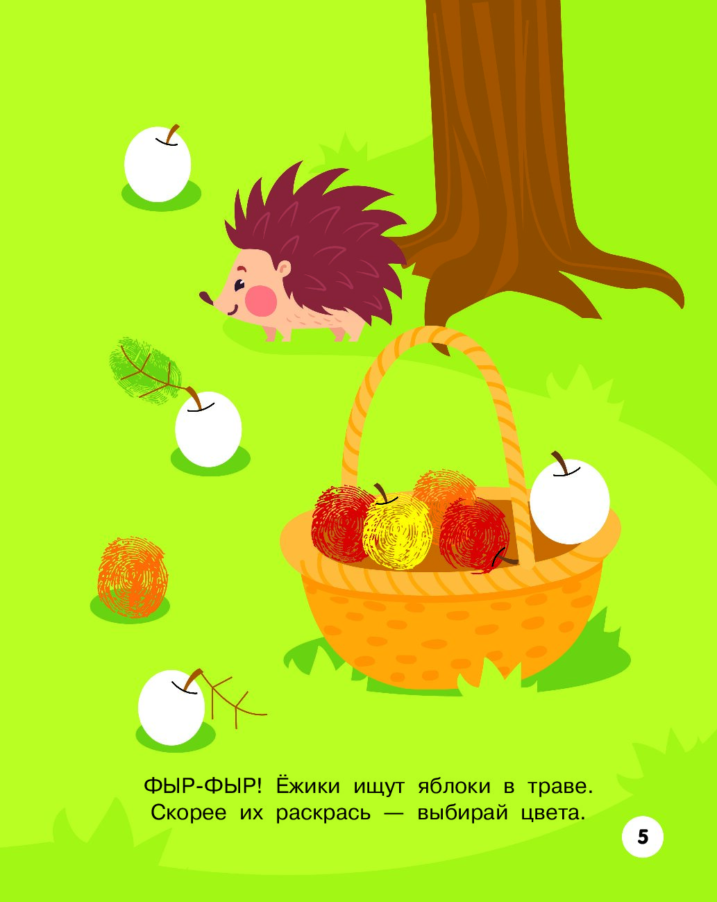 «Фрукты и овощи. Рисуем пальчиками. Раскраска с заданиями» — это отличная развивающая книга с красивыми рисунками. К творчеству всё готово — к картонной обложке приклеен пластиковый лоток со штемпельными подушками-губками, пропитанными краской. 7 цветов: красный, синий, зелёный, жёлтый, оранжевый, розовый, фиолетовый. Краски легко смываются мыльной водой или влажными салфетками. Книга на спирали, поэтому листы легко перекидываются из стороны в сторону, открываясь на 360 градусов. Книга небольшого формата — можно взять с собой в дорогу, на дачу, в путешествие. На 64 плотных листах ребёнок сможет раскрасить картинки пальчиками, дорисовать карандашом или создать собственные шедевры. Свобода самовыражения — лучший способ активизировать творческие способности. Ребёнок получит новый тактильный опыт, исследуя на ощупь текстуру бумаги и красок. Занятия с мамой способствуют формированию социальных связей. Процесс рисования, в котором ребёнок выражает свои чувства без слов, выполняет функцию антистресса. Интерактивная развивающая раскраска станет прекрасным подарком для мальчиков и для девочек на день рождения или Новый год. Рисование пальчиками — это увлекательная и полезная сенсорная игра, развивающая мелкую моторику, внимание, усидчивость, координацию движений, пространственное мышление, фантазию и творческие способности.