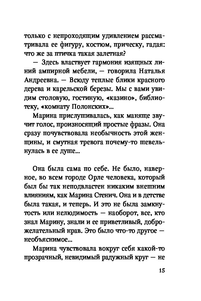 «Художественные фильмы «Ермоловы», «Гадание при свечах», в которых я снималась, способствовали моему знакомству с прозой Анны Берсеневой. Занимательность сюжета в ее романах сопряжена с блестящей психологической проработкой характеров. Ты с головой погружаешься в захватывающее исследование граней человеческой души, обстоятельств, повлиявших на ее формирование. Работать над ролью берсеневских героев – удовольствие». Анна Большова