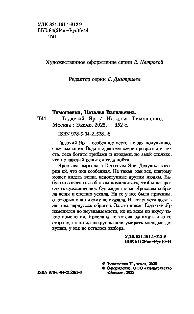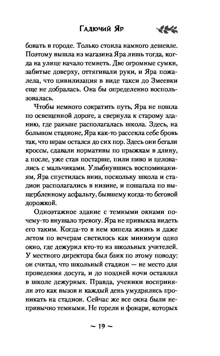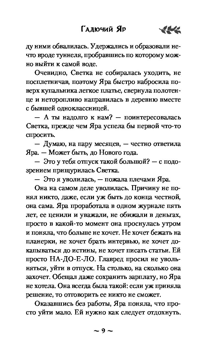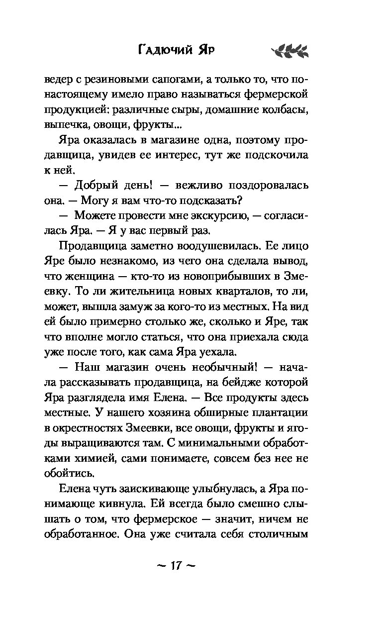 Как и в других работах автора, в «Гадючьем яре» вас ждет захватывающий сюжет, нетипичные герои и, конечно, самая неожиданная развязка.