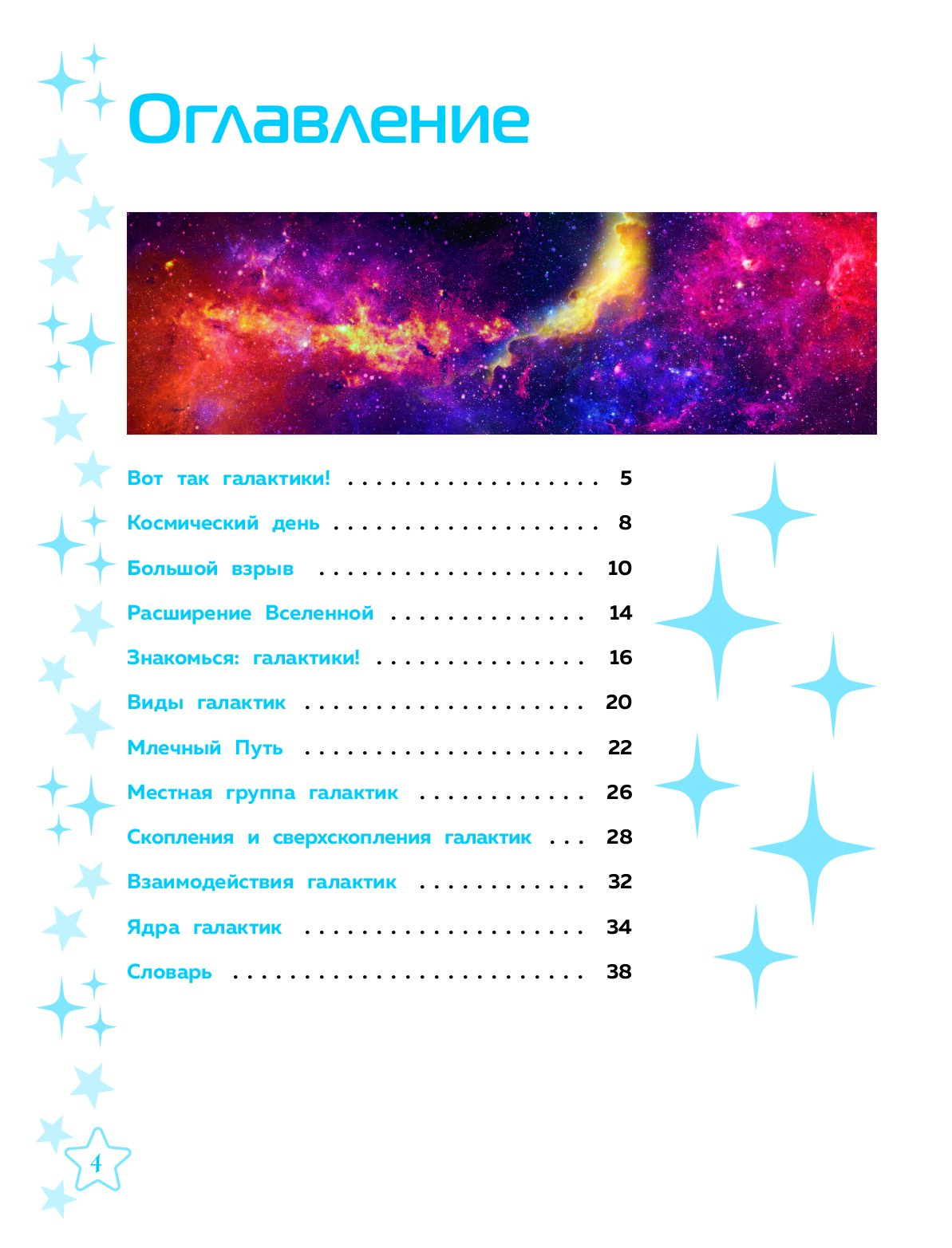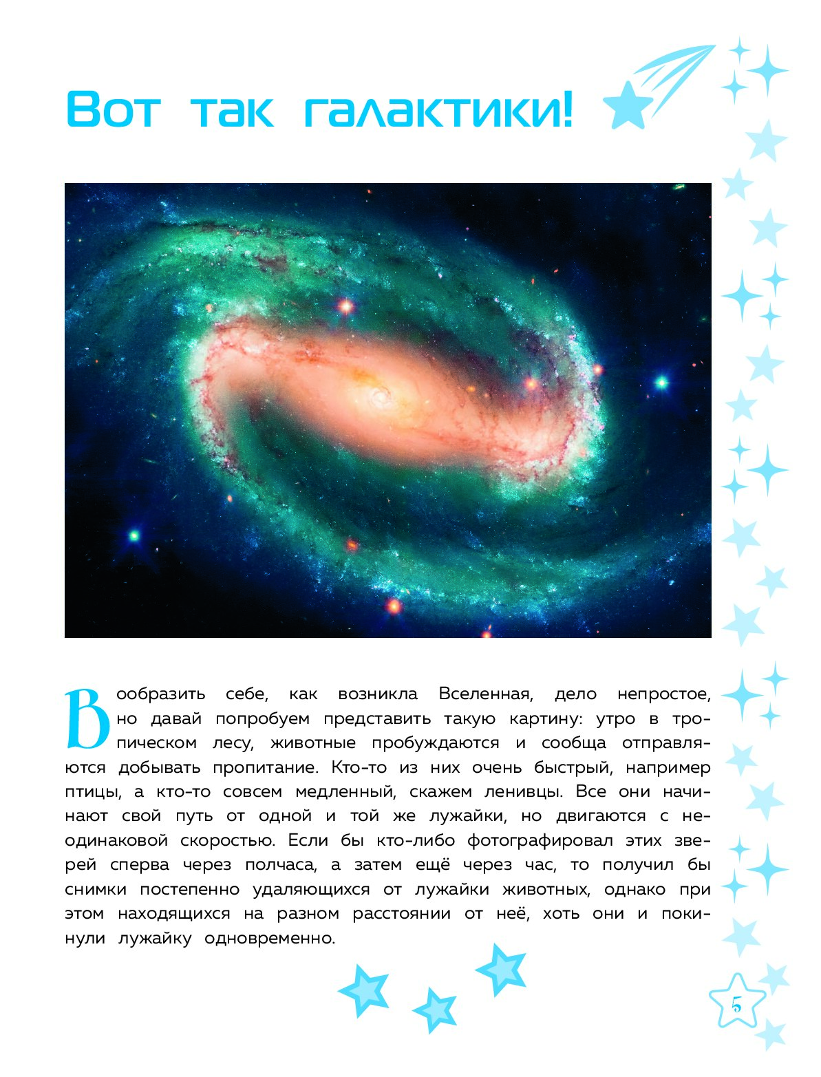 Внимание! Если ты хочешь узнать всё самое интересное о галактиках, то присоединяйся к увлекательнейшему путешествию по космическому пространству! Скучать не придётся! Мы пронесёмся по Млечному Пути, заглянем в галактики Андромеды и Треугольника и доберёмся до скопления Девы, мы будем наблюдать слияния космических систем и даже увидим то, что находится между ними! И это не всё! Нас ждут квазары, чёрные дыры… В пути мы встретим ещё много всего захватывающего!