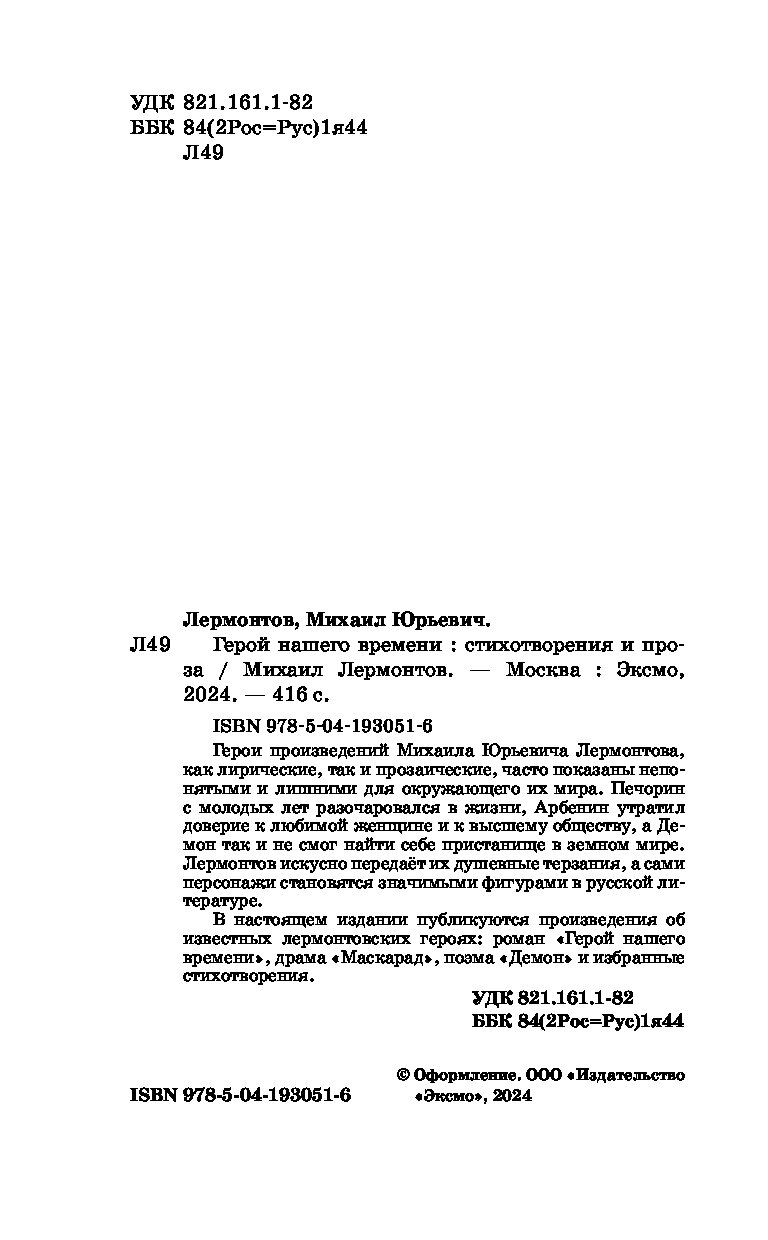 В настоящем издании публикуются произведения об известных лермонтовских героях: роман «Герой нашего времени», драма «Маскарад», поэма «Демон» и избранные стихотворения.