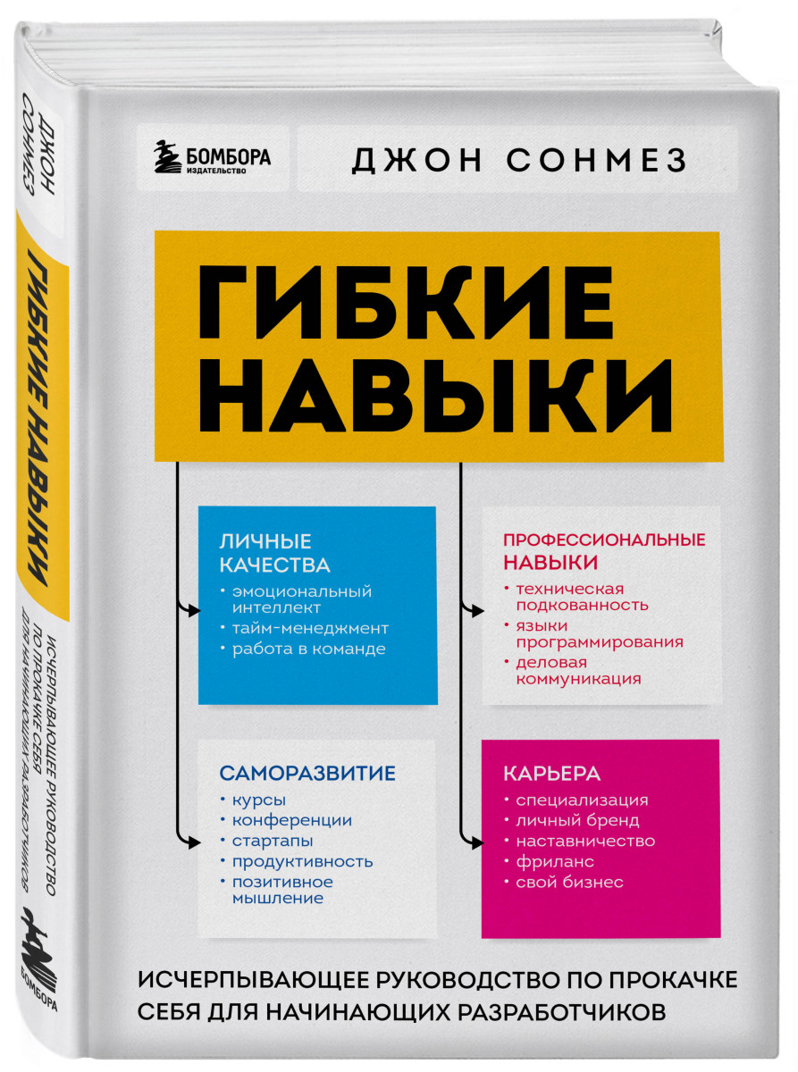 Книг про то, как «войти в айти» и начать карьеру разработчика, написано много, а вот про то, как удержаться в сфере и повышать свою ценность на рынке — единицы. Джон Сонмез решил исправить это недоразумение и написал книгу «Гибкие навыки», которая может помочь начинающим разработчикам учиться новому, развиваться и постоянно держать руку на пульсе.