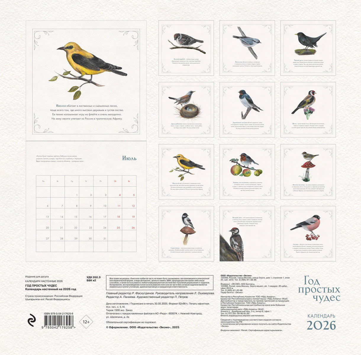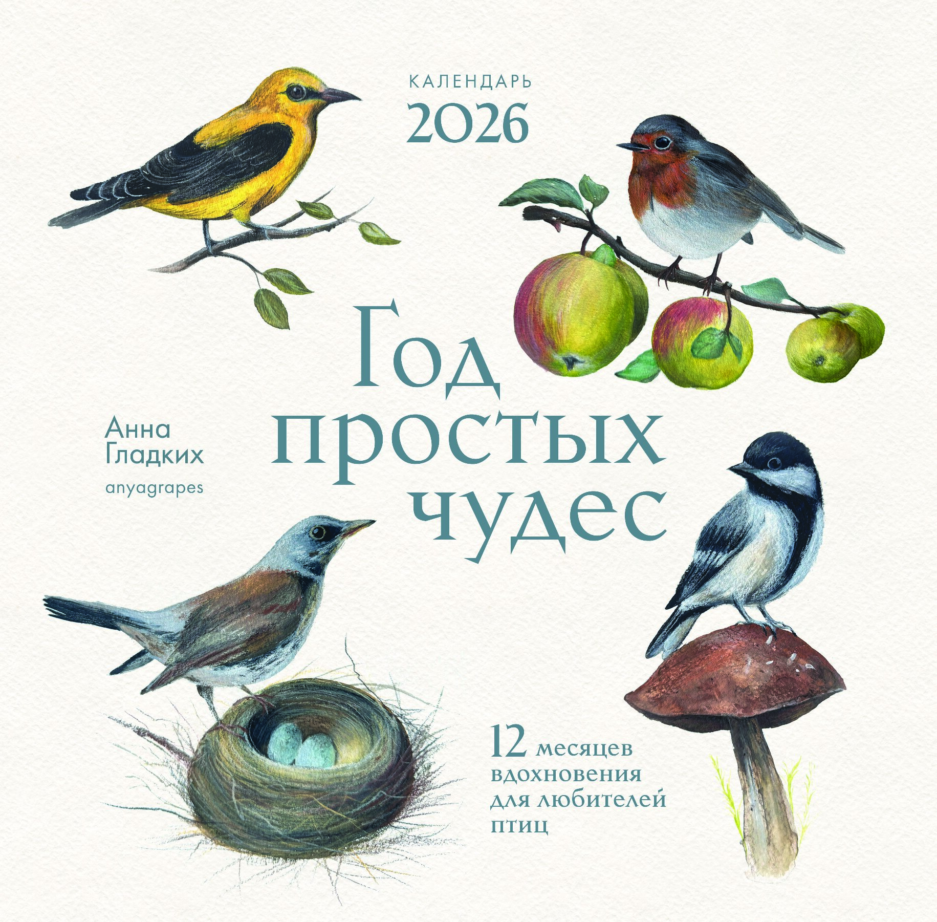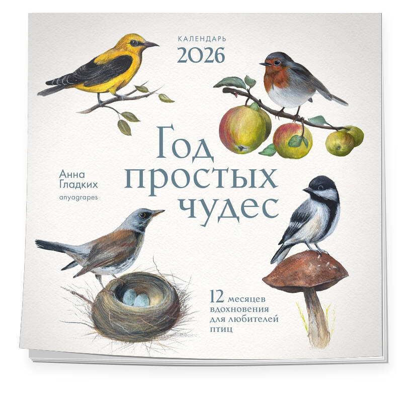 Авторский календарь с иллюстрациями птиц России от известной художницы и блогера Анны Гладких (150 000 подписчиков).