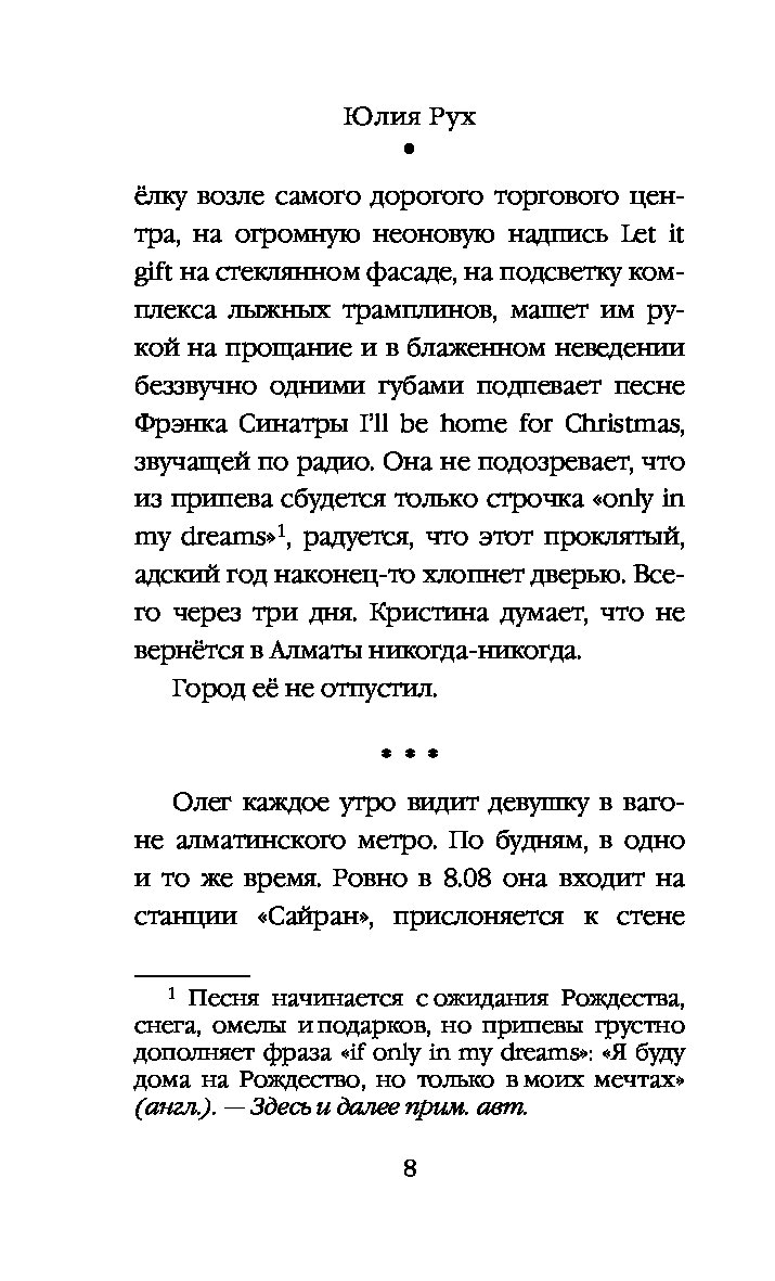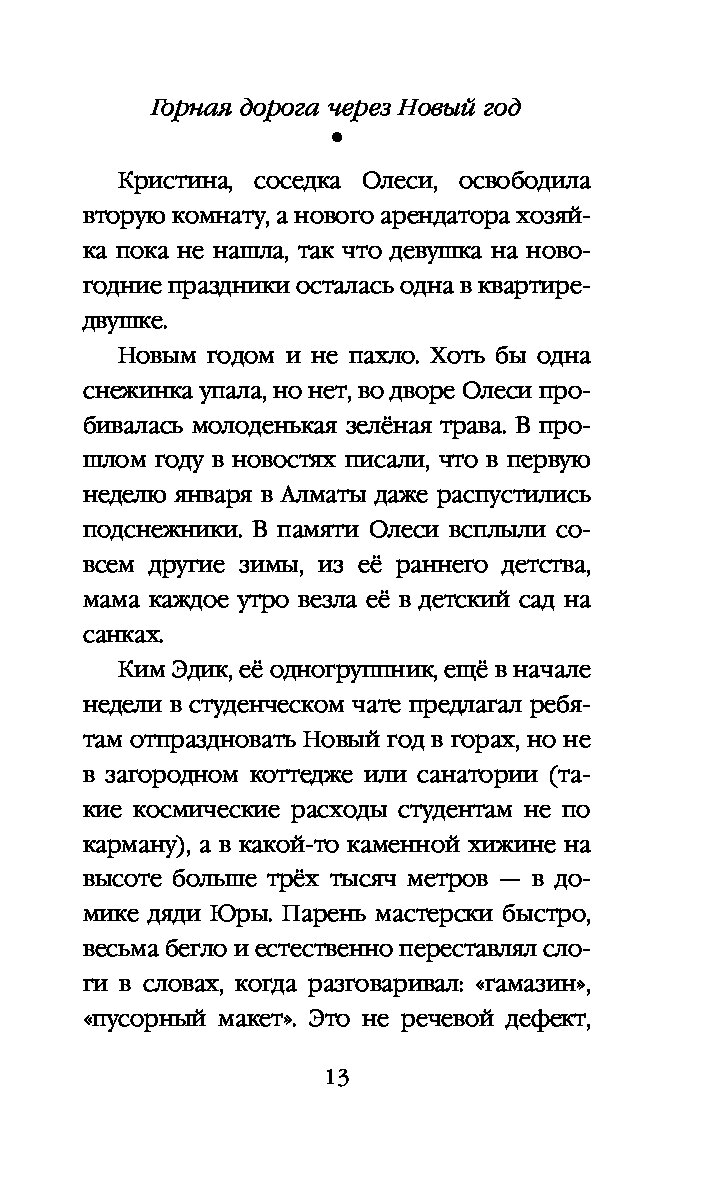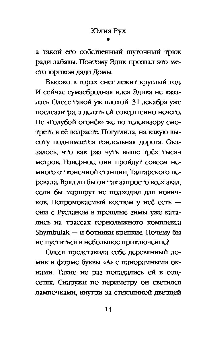 Кристина хотела сбежать из Алматы и забыть всё — работу, любовь, саму себя. Олеся мечтала встретить Новый год с женихом. Но судьба закрыла перевал, аэропорт и все пути, кроме одного — в горы, в компании незнакомых туристов. Там, где оживают самые тайные страхи, чужие люди становятся любимыми. И когда стрелки часов сойдутся в полночь, звон волшебных колокольчиков изменит всё — настоящее, будущее и саму веру в чудо.