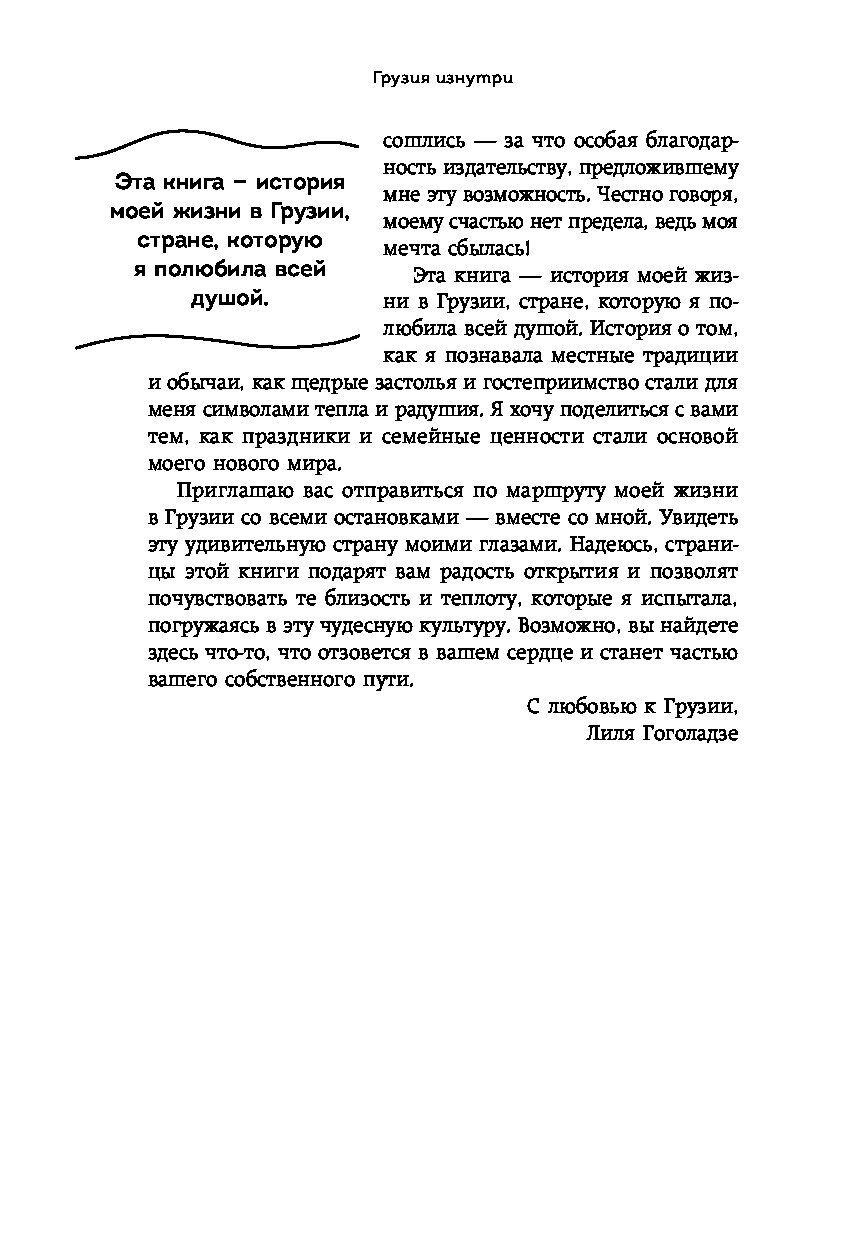 Лиля Гоголадзе вышла замуж за грузина, выучила язык, стала мамой троих сыновей и нашла свое призвание в Тбилиси. В книге «Грузия изнутри» она делится личным опытом, забавными ситуациями, культурными открытиями и семейными историями — с иронией, светом и любовью.
