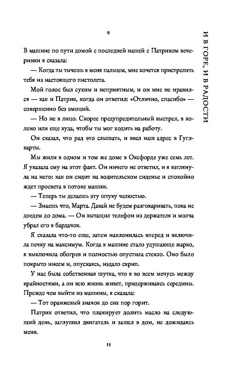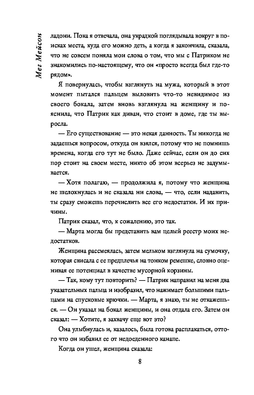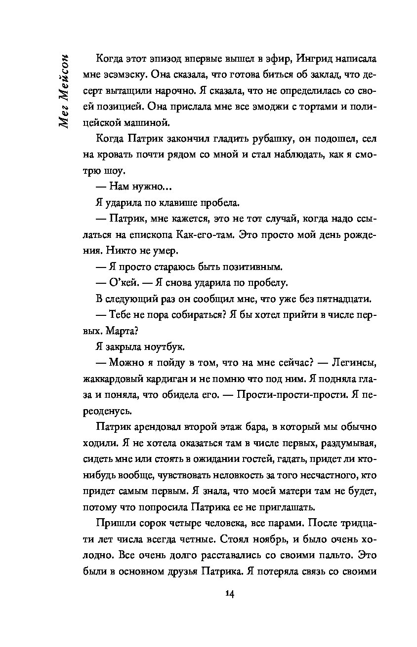 Все говорят Марте, что она умная и красивая, что она прекрасная писательница, горячо любимая мужем, которого, по словам ее матери, надо еще поискать. Так почему на пороге своего сорокалетия она такая одинокая, почти безработная и постоянно несчастная? Почему ей может потребоваться целый день, чтобы встать с постели, и почему она постоянно отталкивает окружающих своими едкими, небрежными замечаниями?