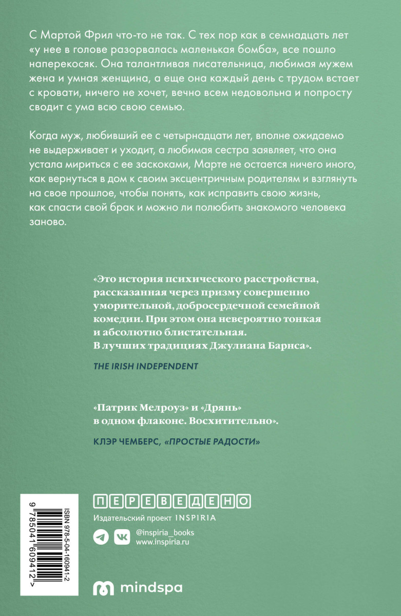 Когда муж, любивший ее с четырнадцати лет, в конце концов не выдерживает и уходит, а сестра заявляет, что она устала мириться с ее тараканами, Марте не остается ничего иного, как вернуться в дом к своим родителям, но можно ли, разрушив все до основания, собрать из обломков новую жизнь и полюбить знакомого человека заново?
