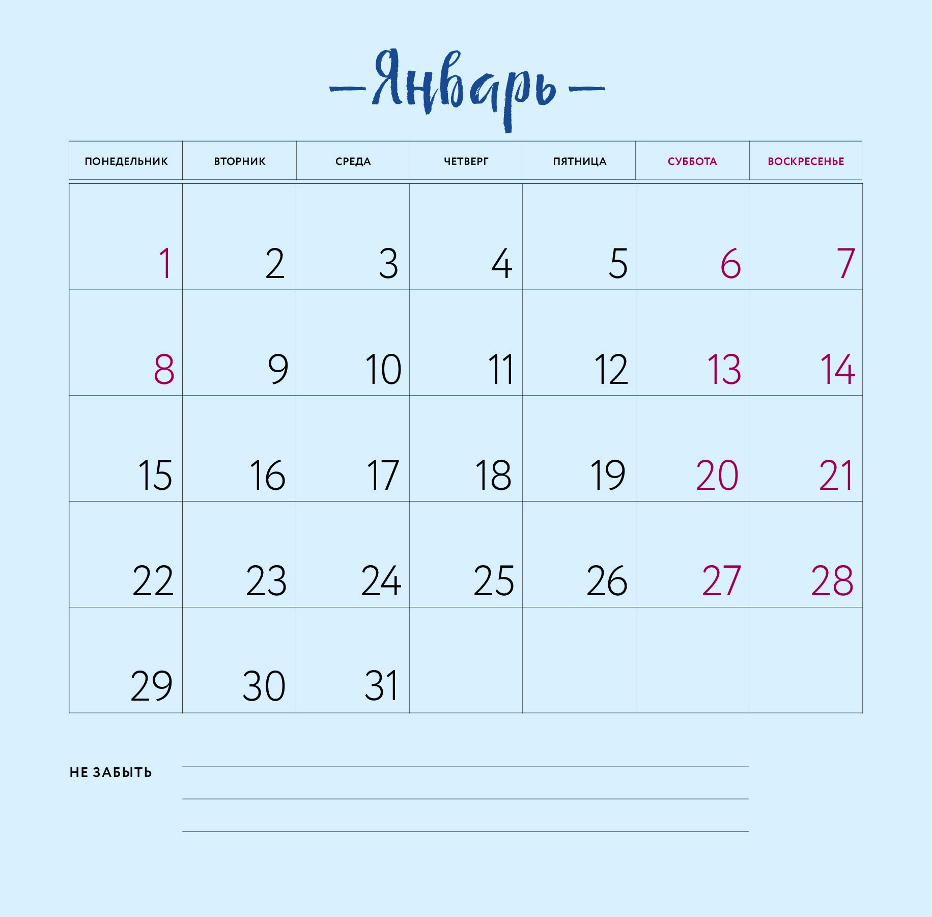 Наши настенные календари отличаются высоким качеством исполнения! Тщательно подобранные иллюстрации, напечатанные на глянцевой бумаге высочайшего качества, станут настоящим украшением дома, а в календарной сетке найдется место для ваших планов: большие клетки позволят делать записи и организовать свой год! В календаре также отмечены все государственные праздники.