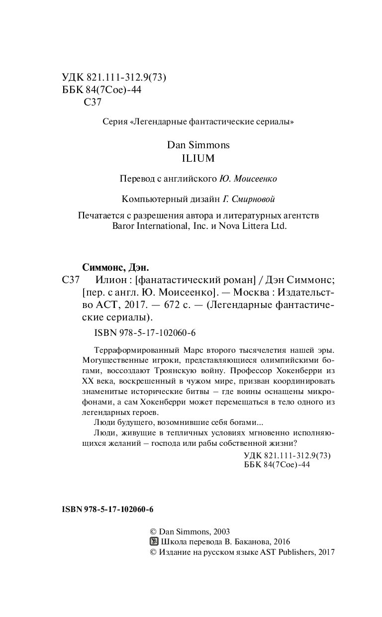 —Книга «Илион» Симмонс Д.
