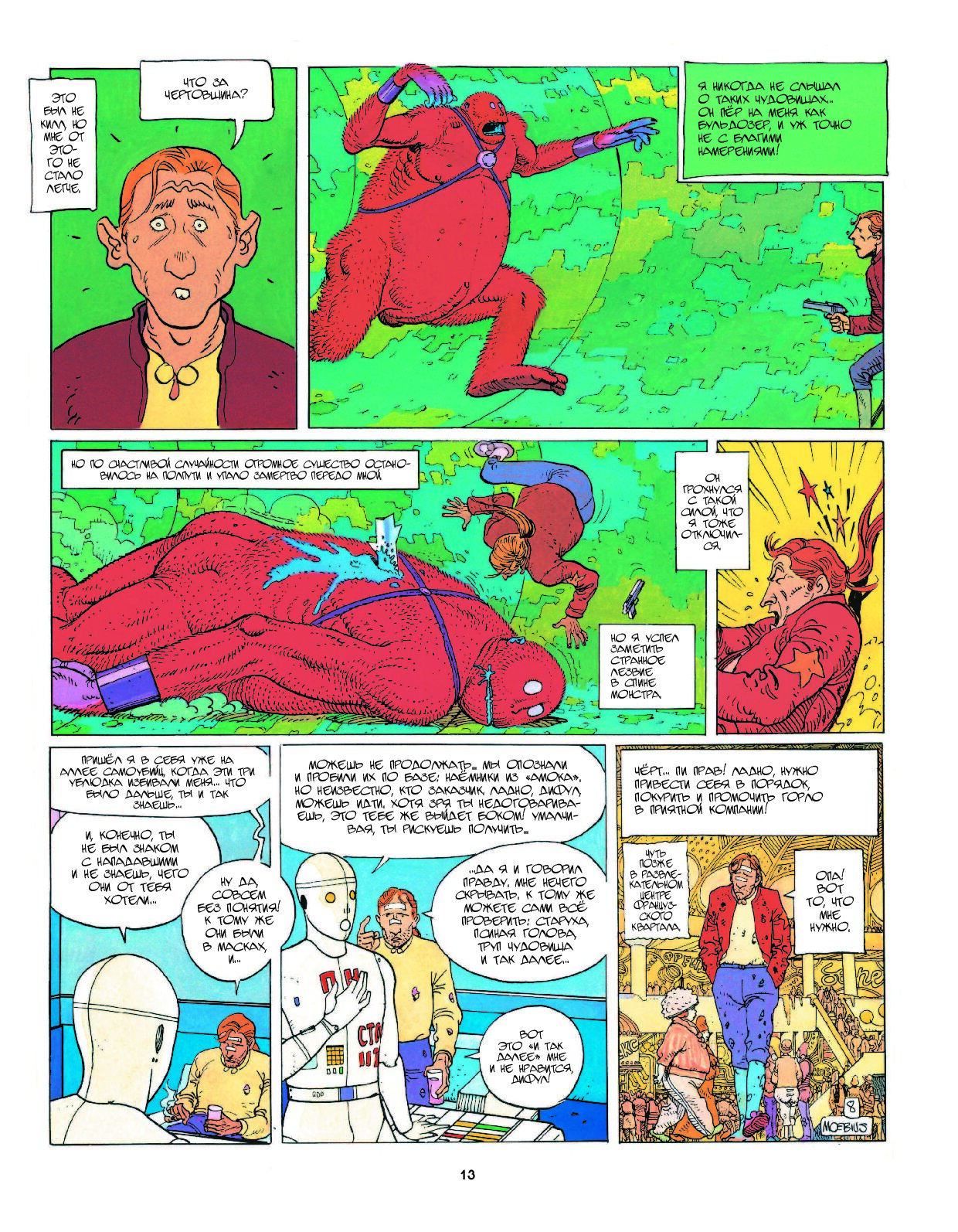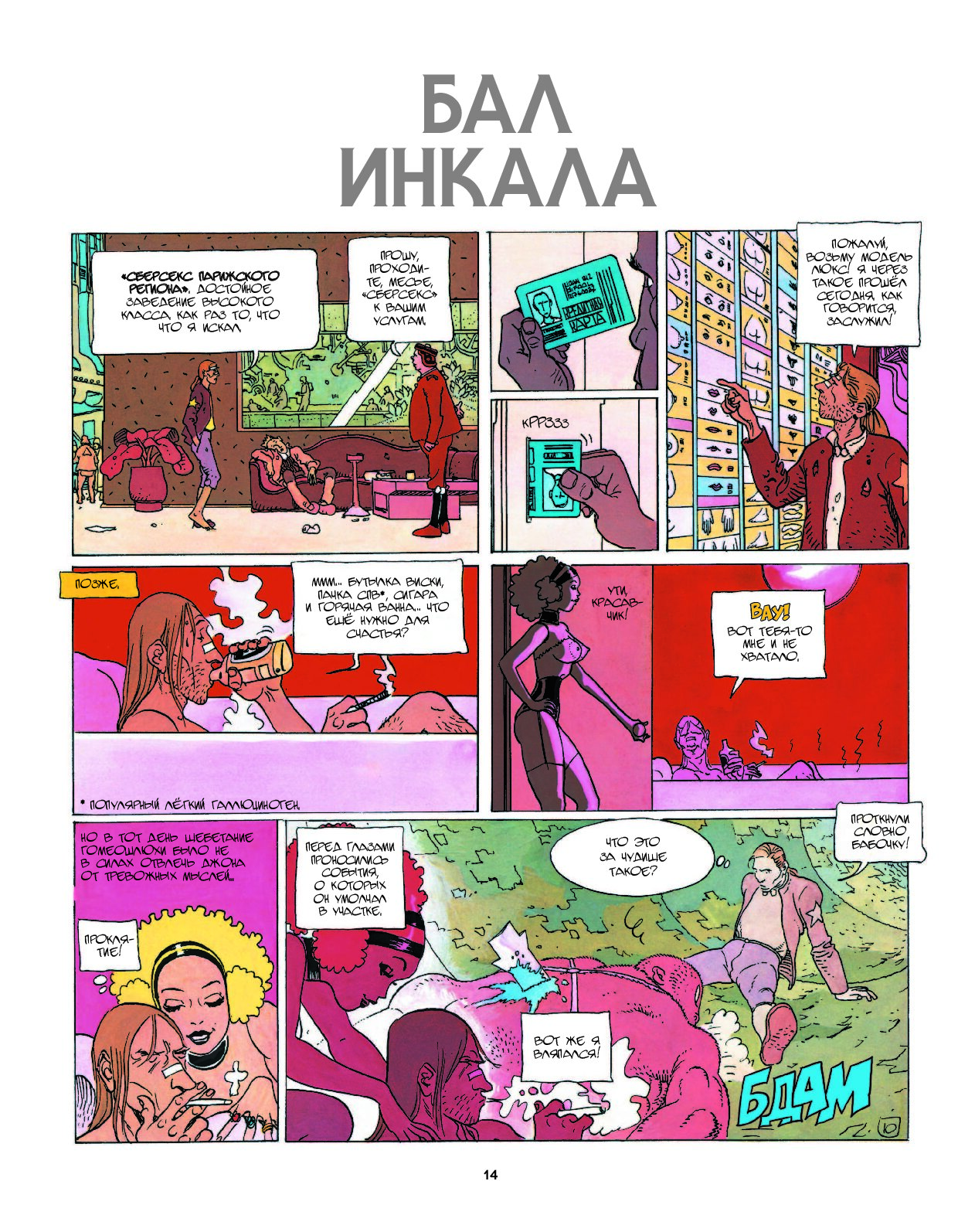 «Инкал» – это неповторимый сплав психоделики исступлённого Алехандро Ходоровски и мастерства не менее безумного Мёбиуса. Это идеальный символ эпохи Métal Hurlant – поры сумасшедших графических экспериментов и амбициозных нарративов в мире комиксов. Потратив несколько лет на создание так и не снятой «Дюны», Ходоровски решил не сдаваться и обратился за помощью к Мёбиусу («Герметический Гараж», «Притча»). Результатом сотрудничества двух мэтров стал рассказ о невероятном спиритическом путешествии Джона Дифула, обычного детектива класса R, оказавшегося в самом центре событий межгалактического масштаба.