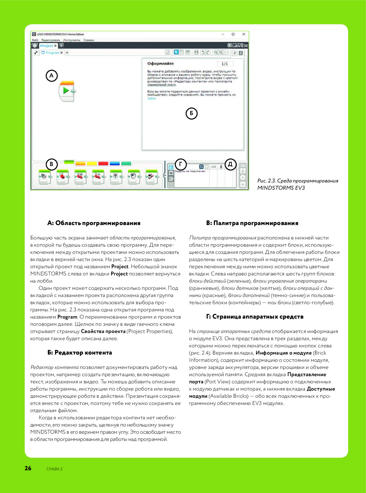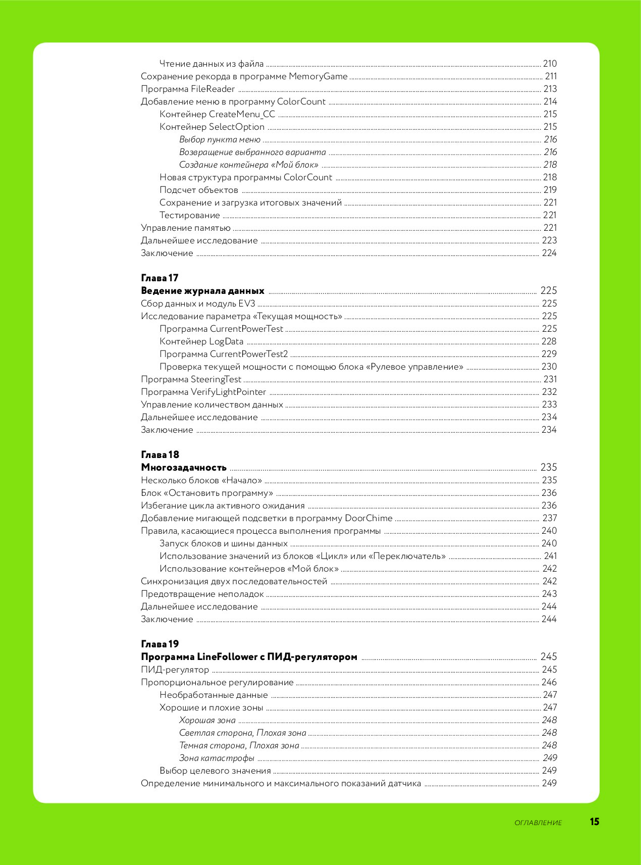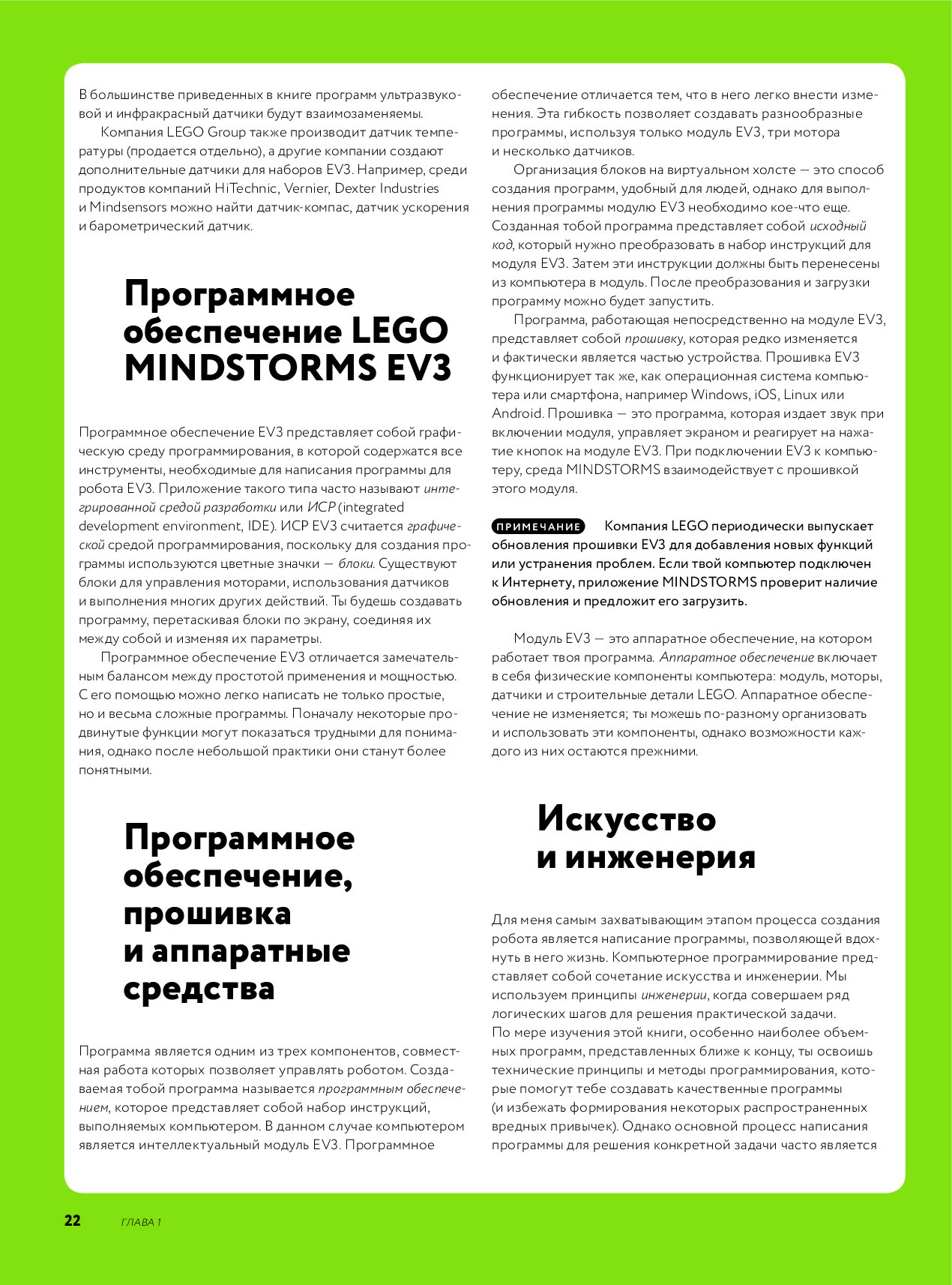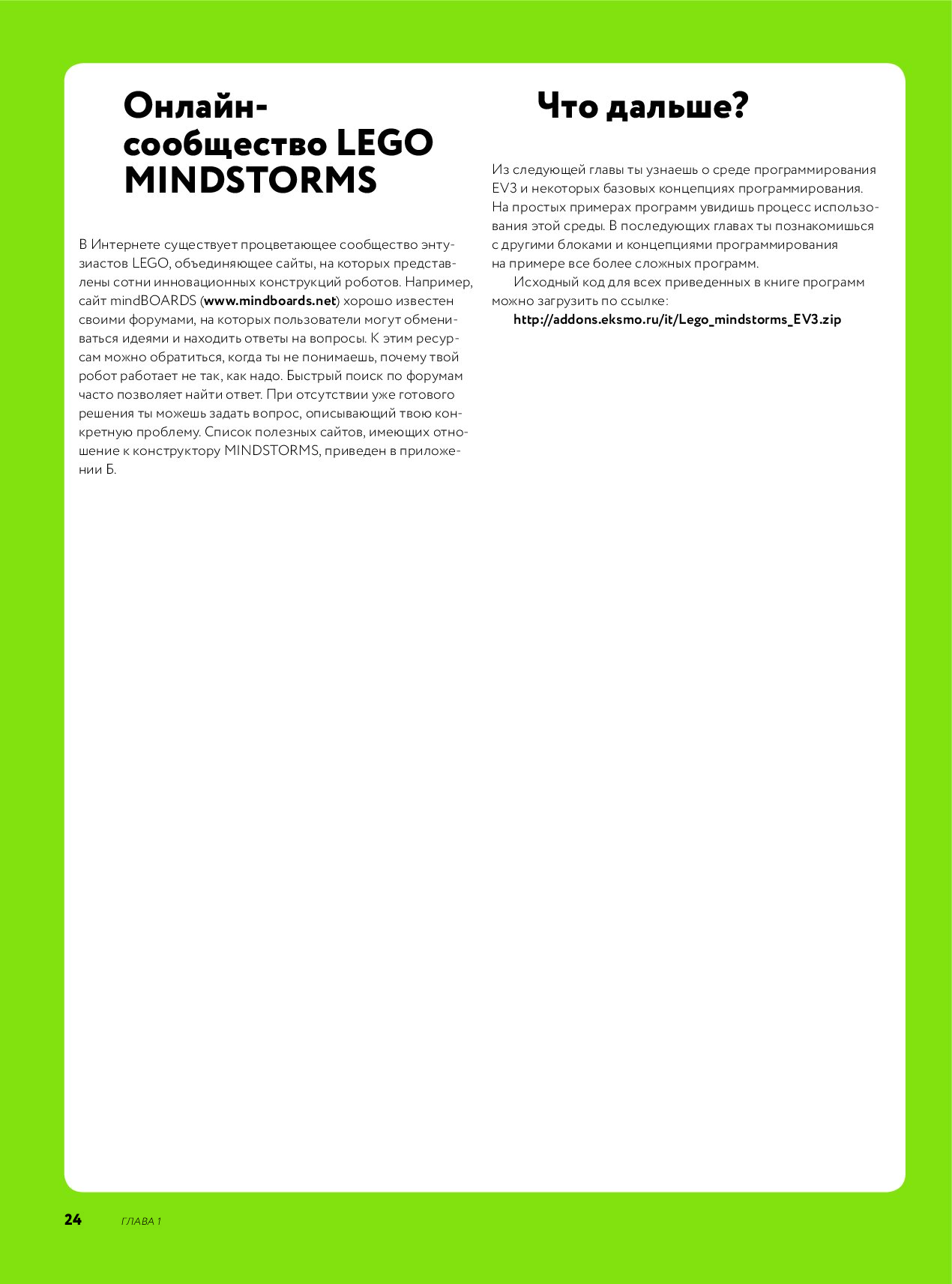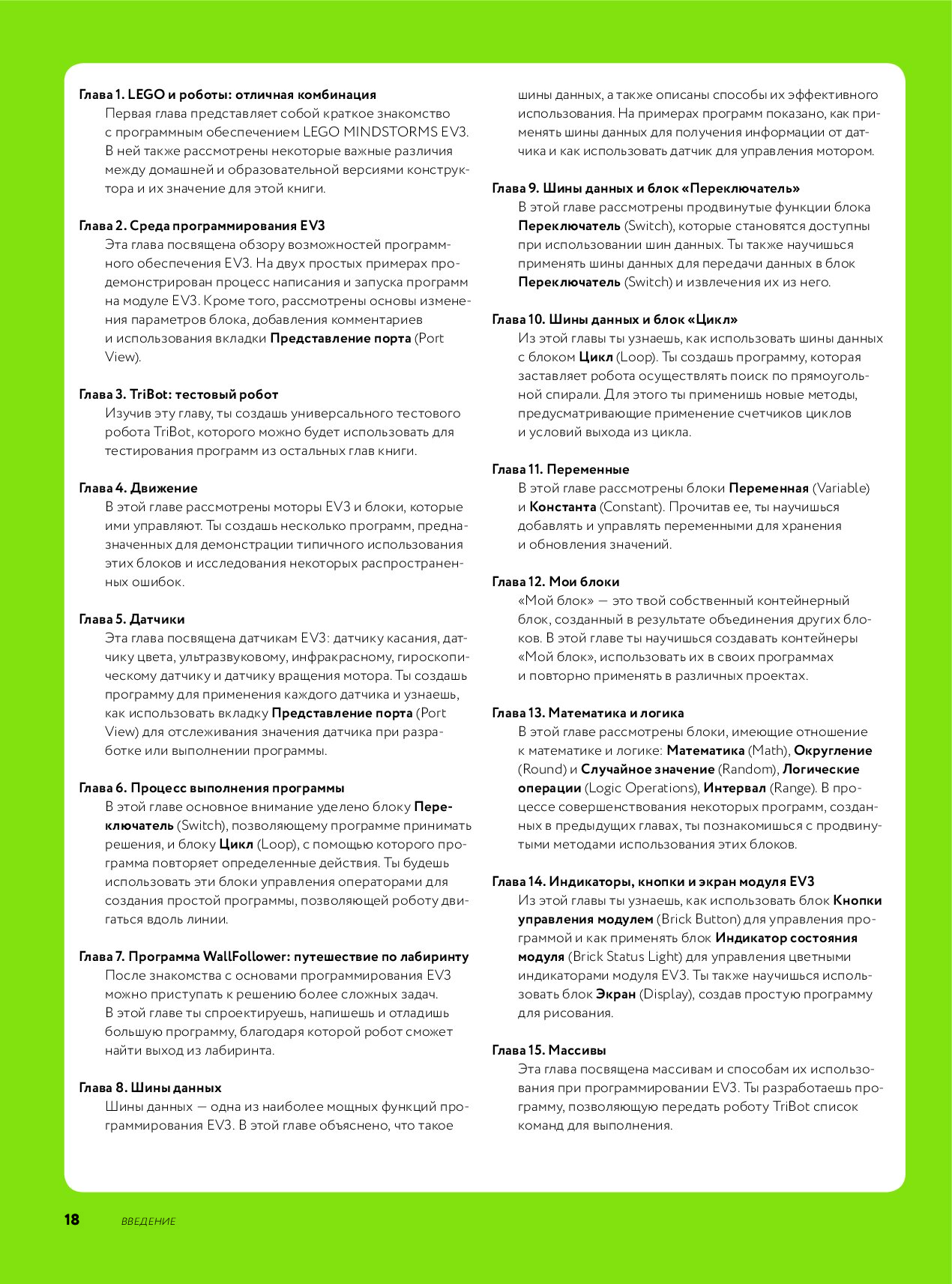 Станьте суперпрограммистом, собирайте роботов из конструктора LEGO MINDSTORMS EV3 и управляйте ими! С этой цветной книгой, снабженной множеством понятных иллюстраций, вы без труда освоите язык программирования для управления вашим роботом LEGO, напишете свои первые программы, узнаете такие важные понятия, как блоки, шины данных, файлы и переменные. Занимайтесь по ней дома или в школе робототехники, выполняйте интересные задания и наблюдайте, как робот, которого вы собрали собственными руками, учится выбираться из лабиринтов, выполняет команды, показывает на дисплее картинки и делает множество других крутых штук! Подходит как для самостоятельного изучения, так и для занятий с ребенком или учениками.