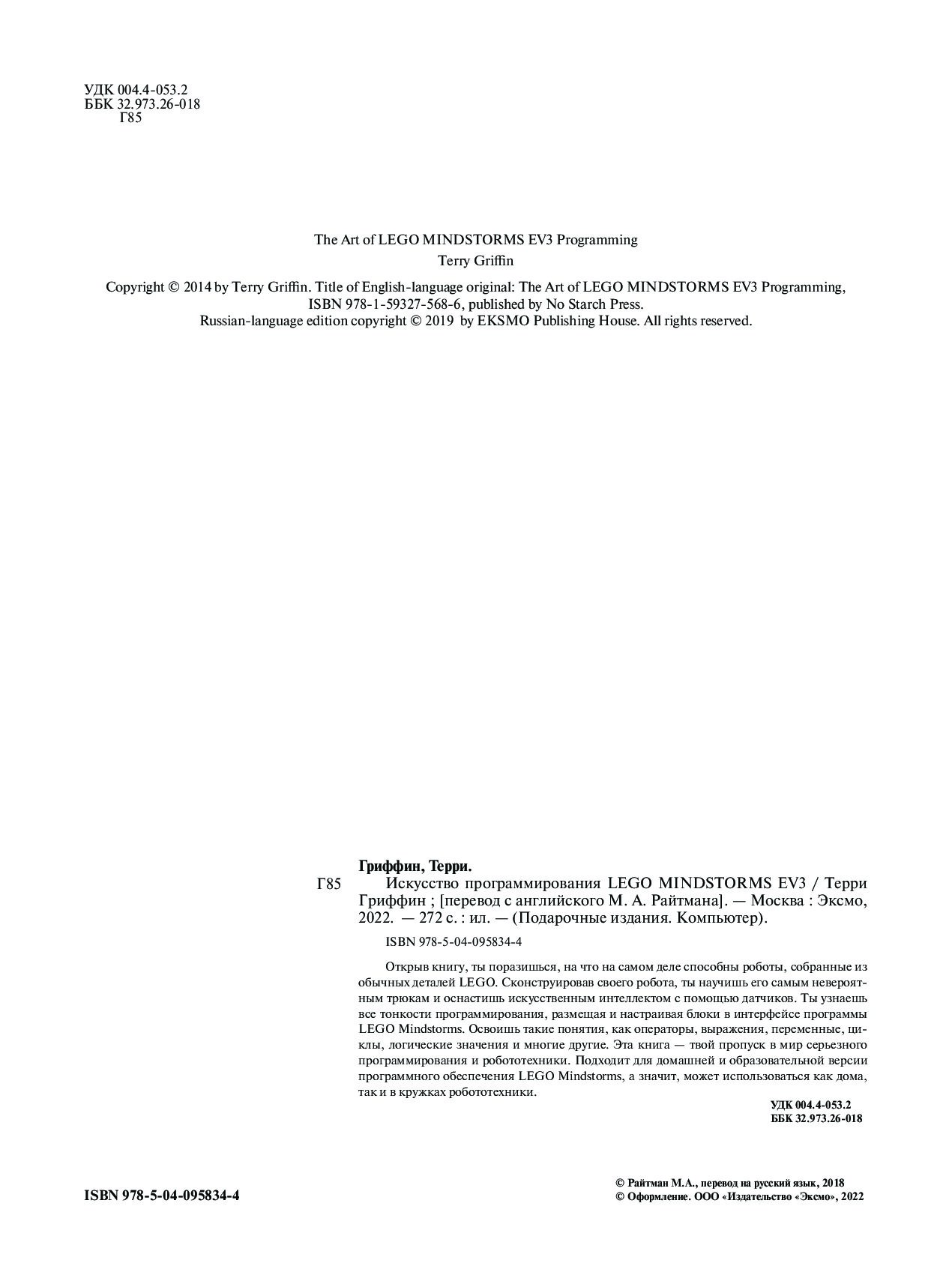 — «Искусство программирования LEGO MINDSTORMS EV3» Гриффин Т.