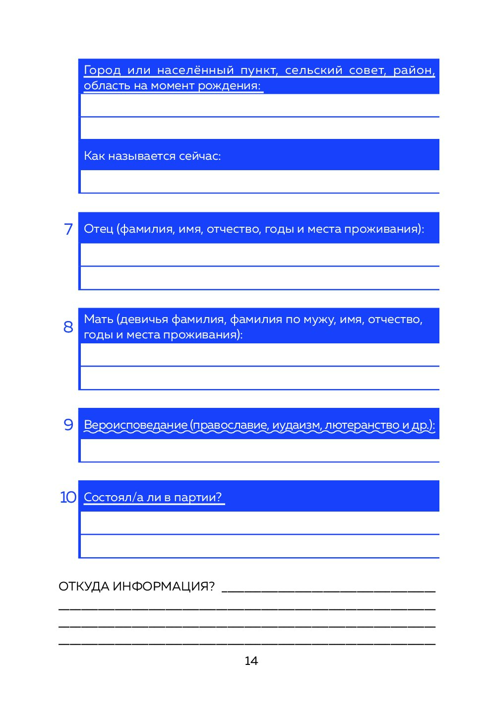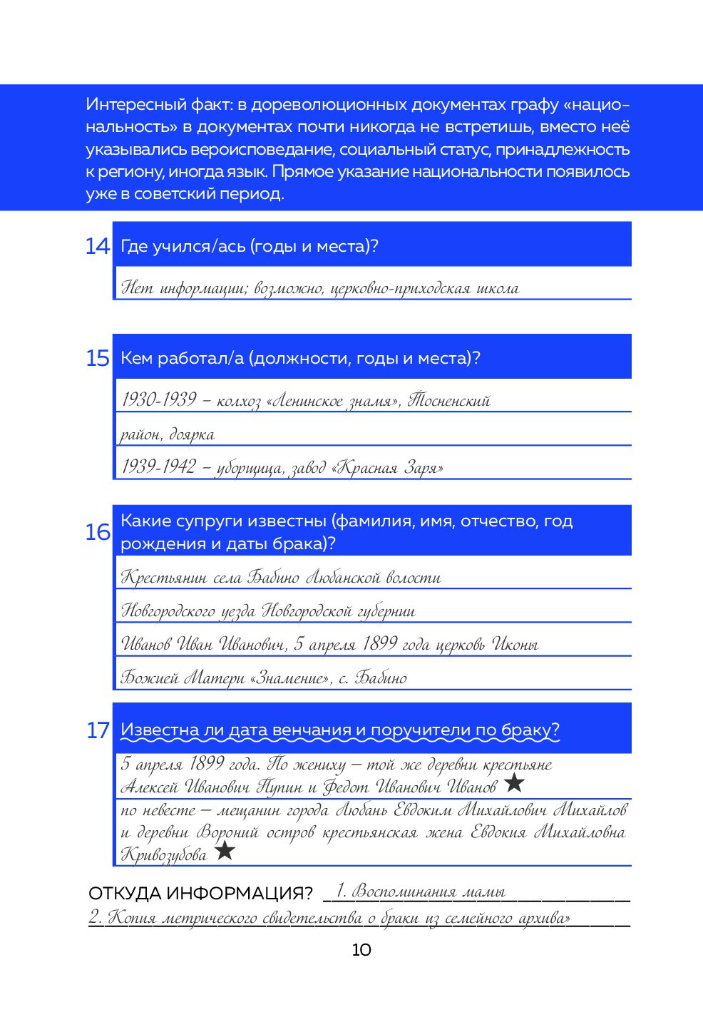 - Собрать и упорядочить информацию в анкетах: от опроса родственников до анализа архивных документов.