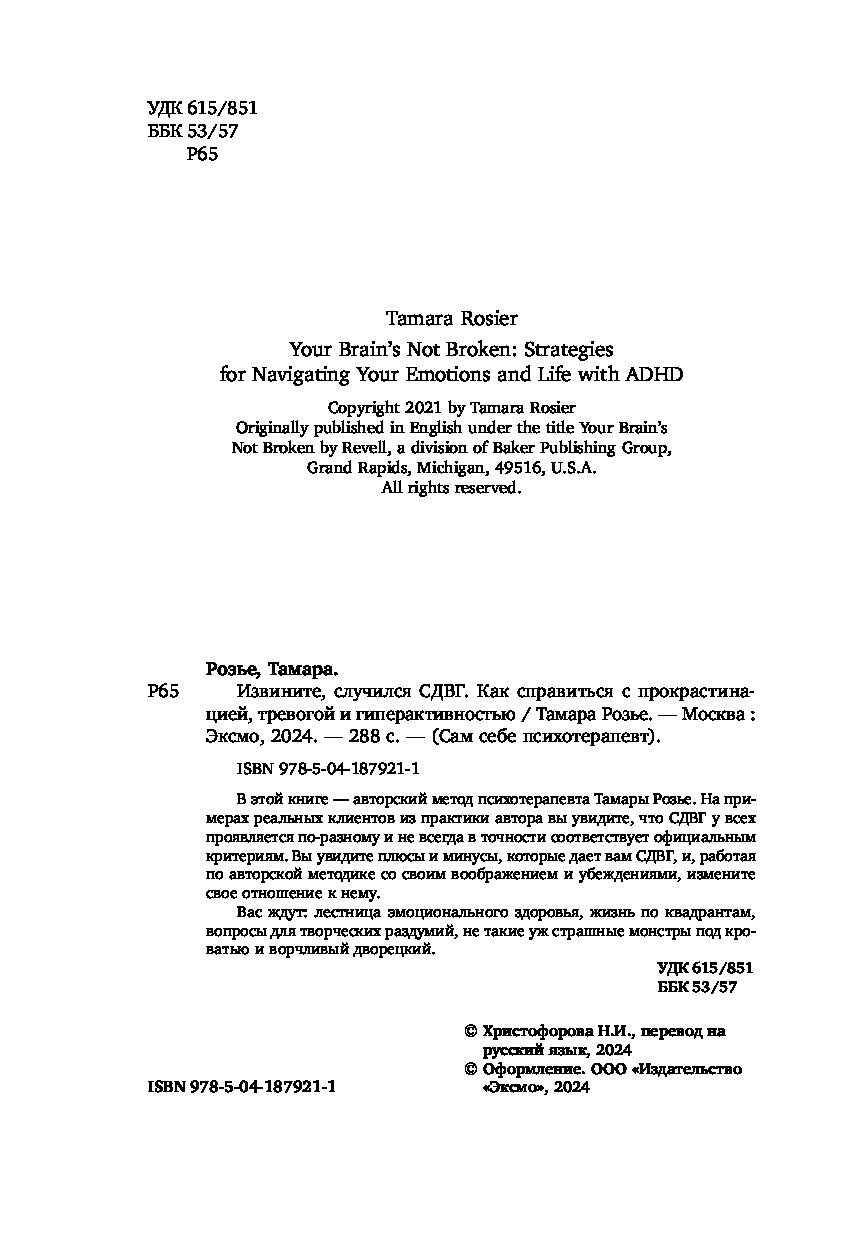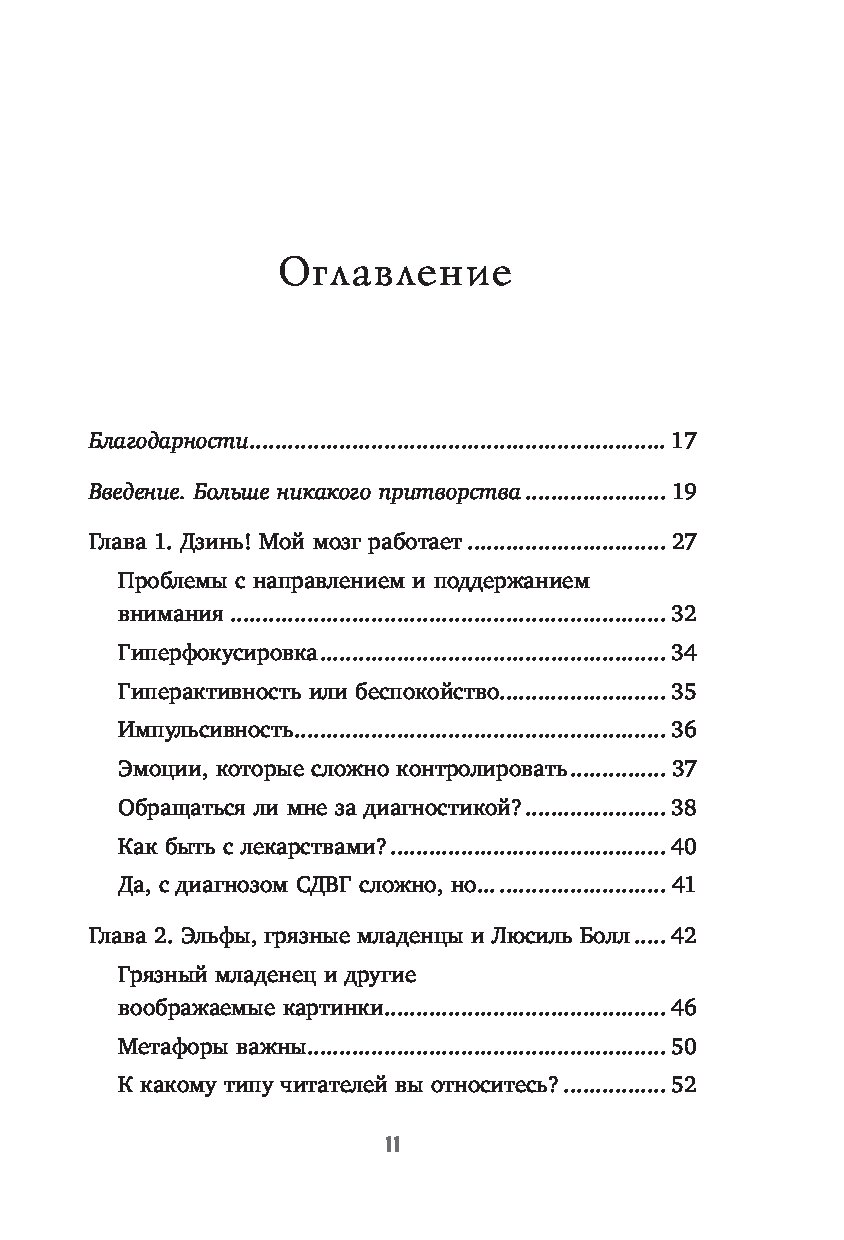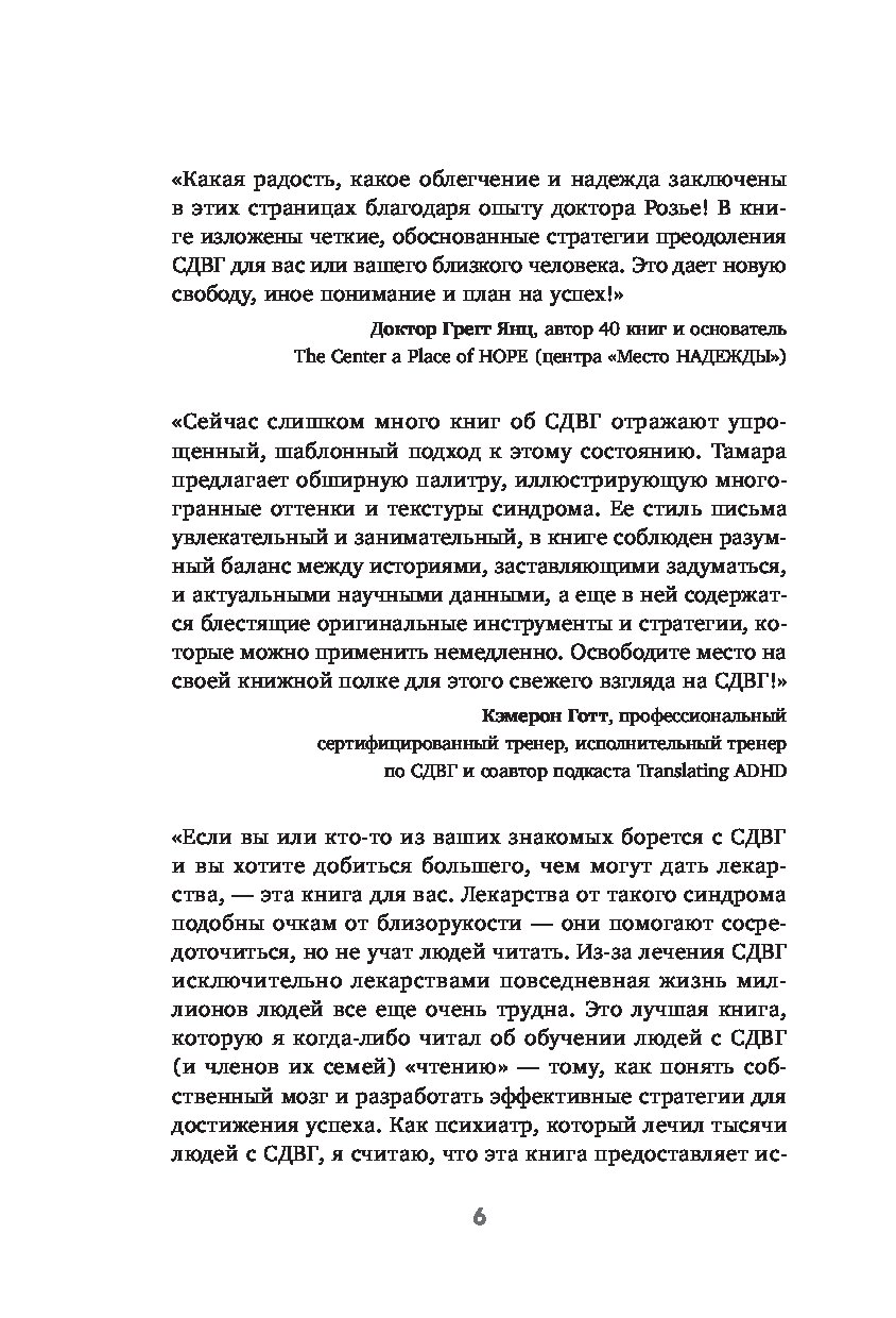 "Книга затрагивает важные аспекты СДВГ, выходящие за рамки официальных критериев и бытующих стереотипов. Люди с СДВГ почувствуют валидацию и получат нестандартные практические инструменты для преодоления трудностей. Текст пропитан сопереживанием, добрым юмором и оптимизмом. Обязательно прочтите эту книгу, если у вас, ваших близких или клиентов есть СДВГ".