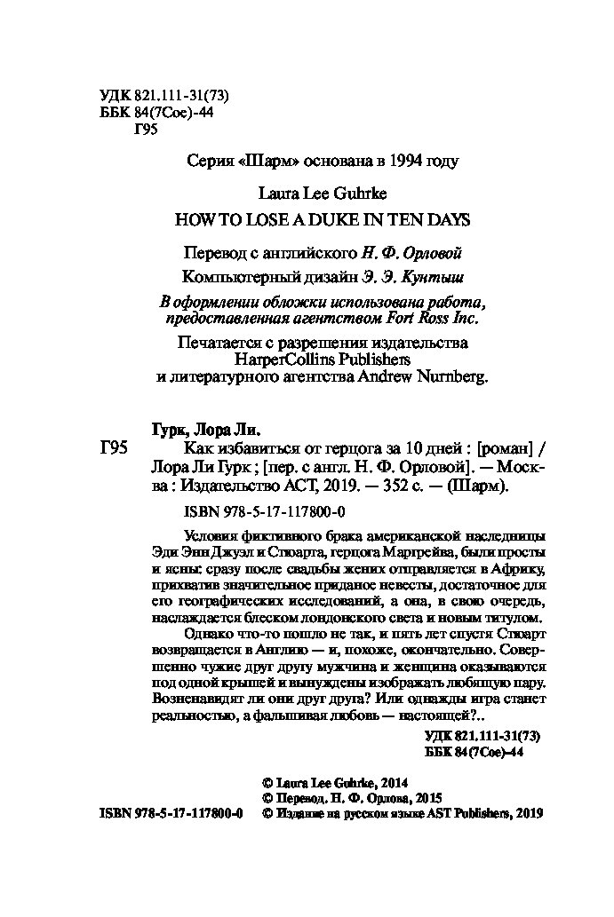 —Книга «Как избавиться от герцога за 10 дней» Гурк Л.