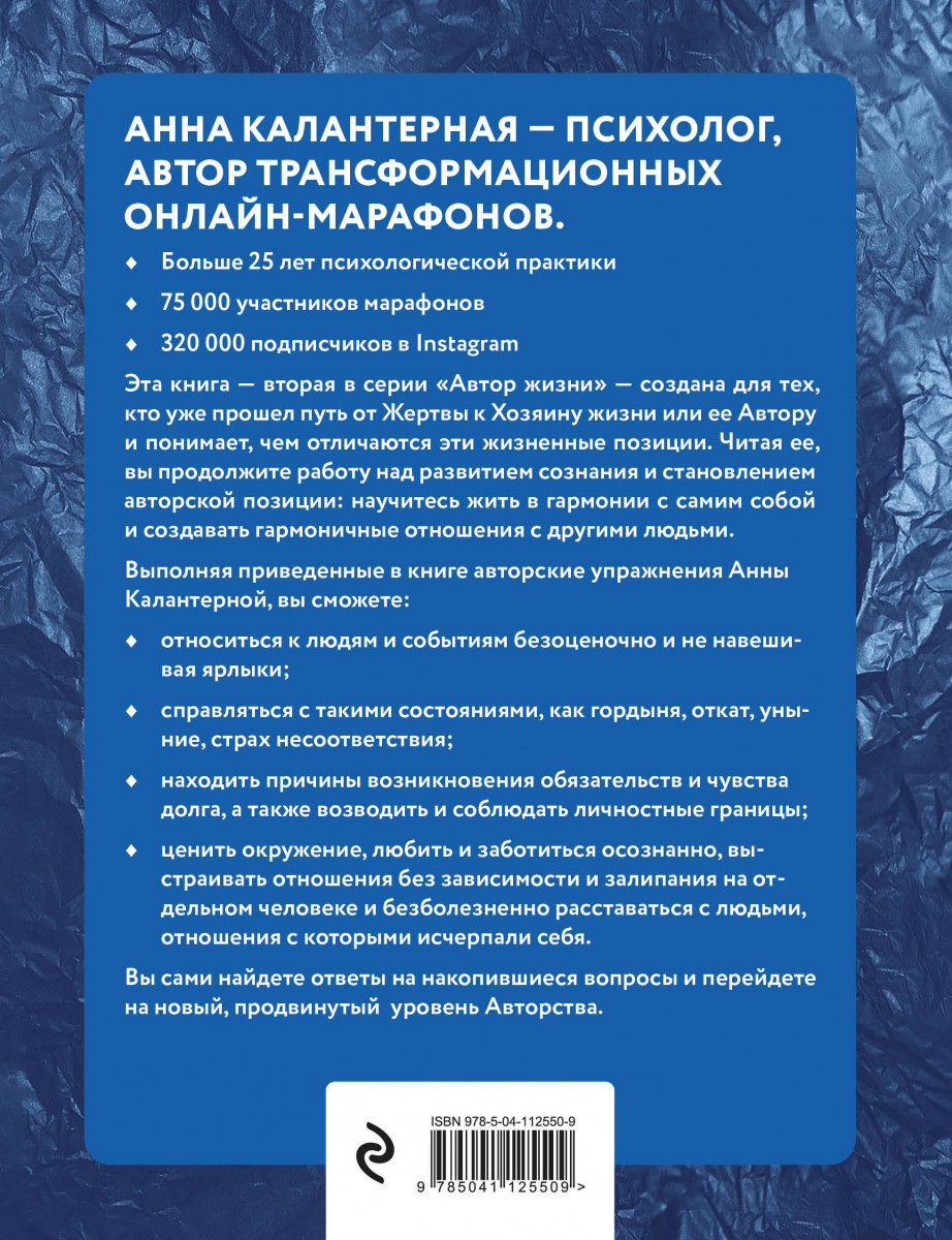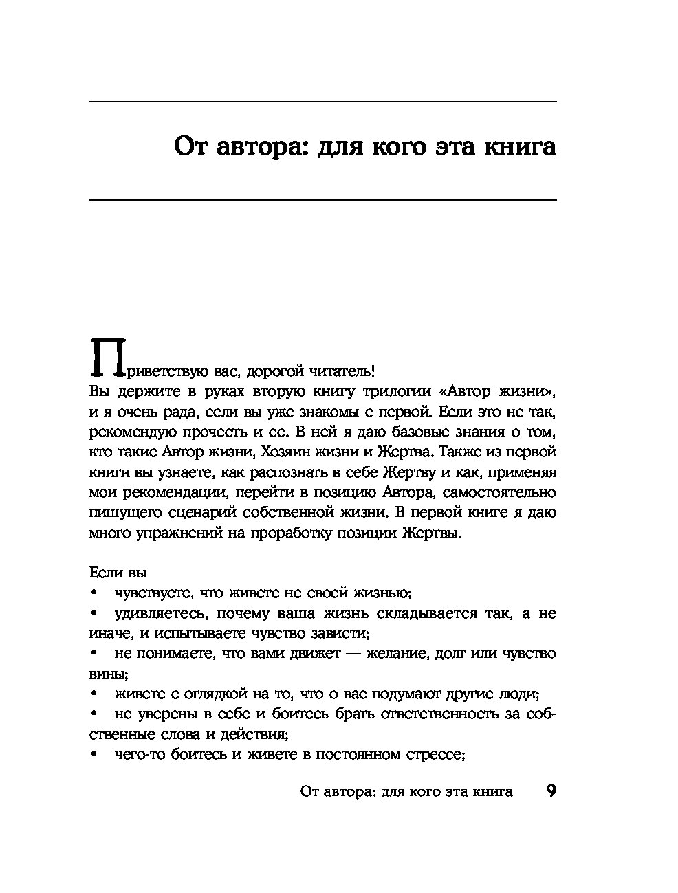 Вторая книга в серии «Автор жизни» создана для тех, кто уже прошел путь от Жертвы к Хозяину жизни или ее Автору и понимает, чем отличаются эти жизненные позиции. Читая ее, вы продолжите работу над проработкой сознания и становлением авторской позиции: научитесь жить в гармонии с самим собой и создавать гармоничные отношения с другими людьми.