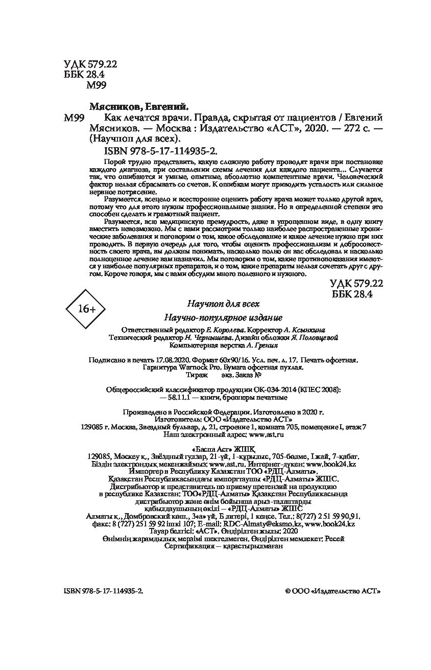 Новая книга научно-популярной серии! Как уберечь себя от врачебных ошибок - читайте в книге врача Евгения Мясникова.