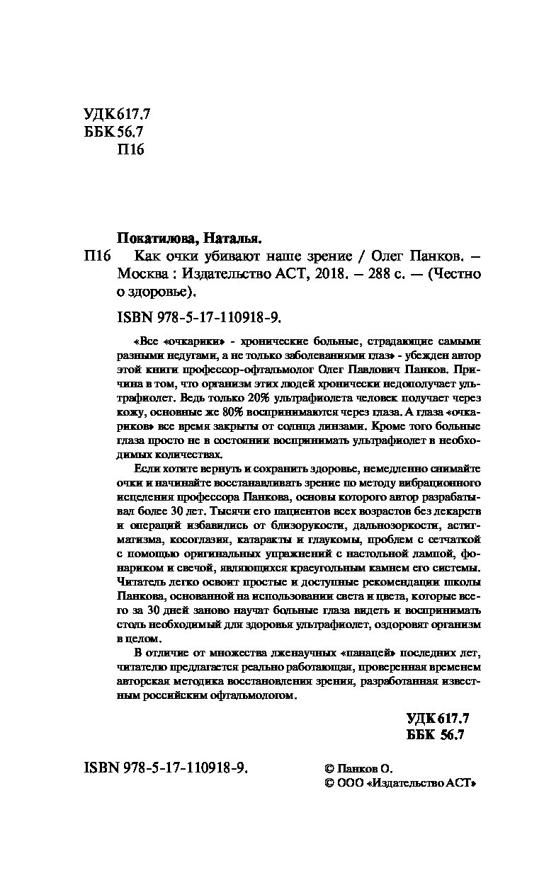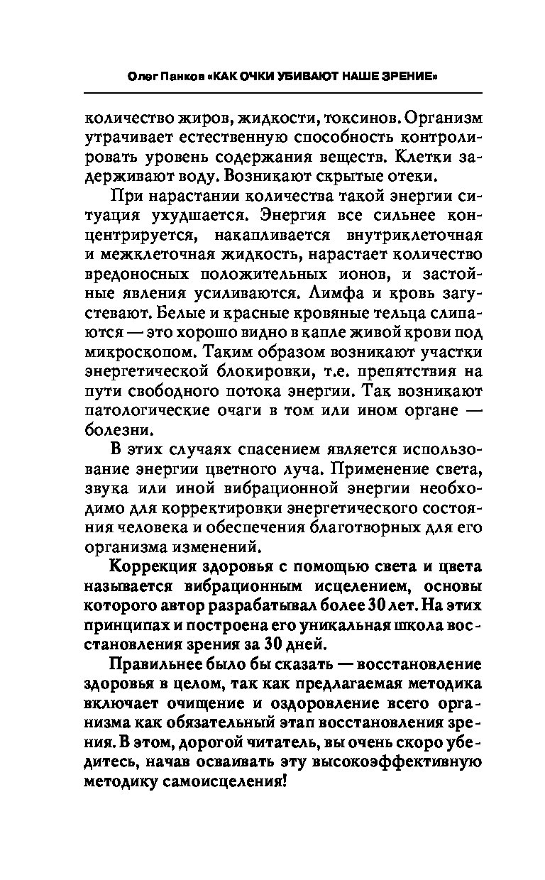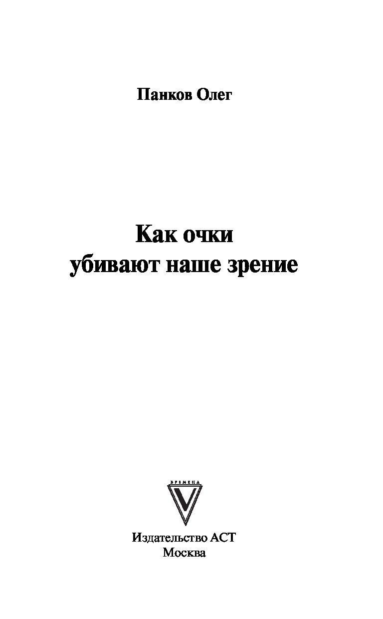 —Книга «Как очки убивают наше зрение» Панков О.П.