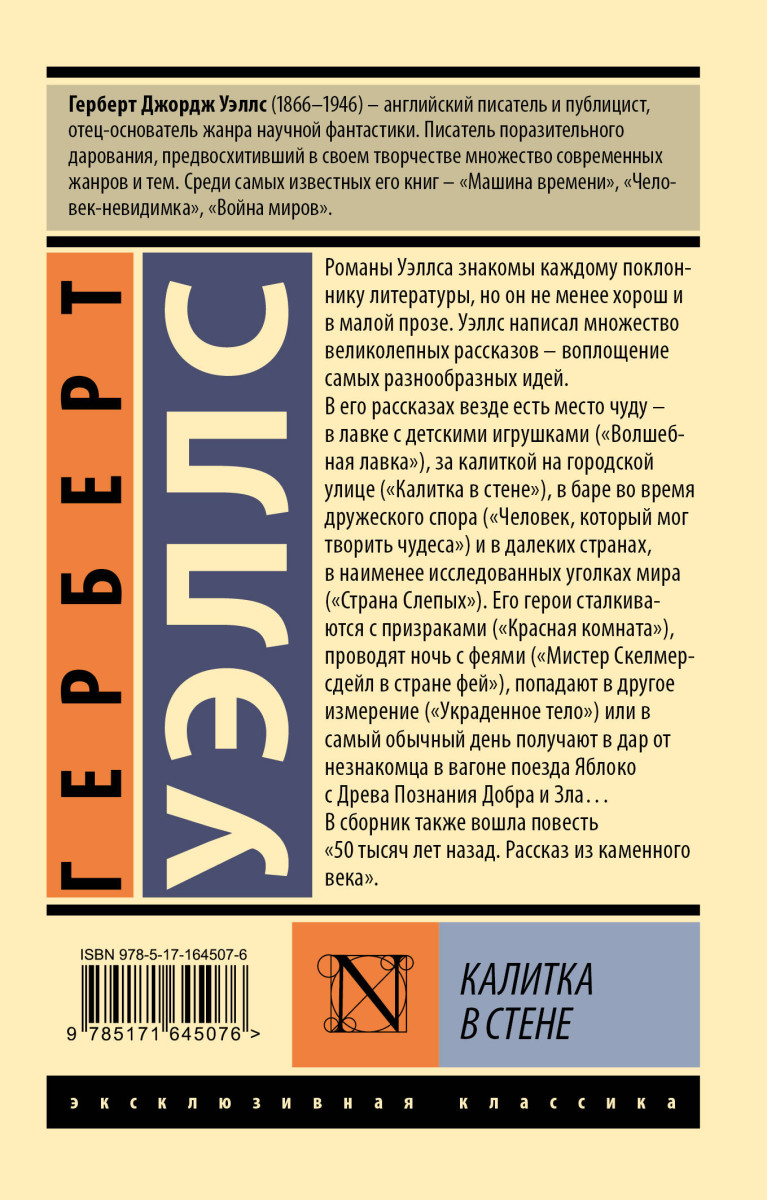 — Не менее хорош Уэллс был и в малой прозе. За свою карьеру автор сочинил множество великолепных рассказов — настоящее воплощение самых разных идей. В рассказах писателя всегда находится место чуду.