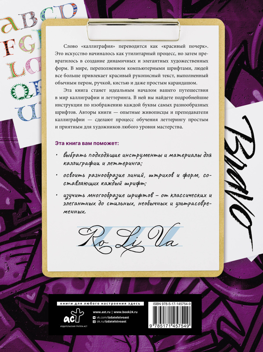 Подарочное иллюстрированное издание-руководство по рисованию с прописями для отработки навыков. Эта книга станет идеальным началом вашего путешествия в мир каллиграфии и леттеринга. В ней вы найдете подробнейшие инструкции по изображению каждой буквы самых разнообразных шрифтов. Авторы книги – опытные живописцы и преподаватели каллиграфии – сделают процесс обучения леттерингу простым и приятным для художников любого уровня мастерства.