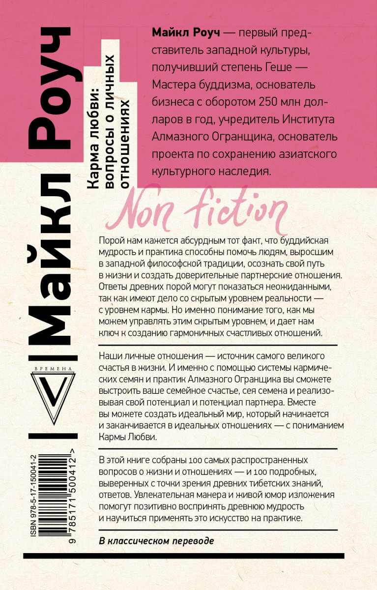 «Карма любви» – книга, в которой аккумулирован многолетний опыт, полученный автором у стоп двенадцати величайших мастеров Тибета. Майкл Роуч дарует вам уникальные знания, с помощью которых вы сможете выстроить гармоничные отношения с партнером, освещенные божественной искрой.