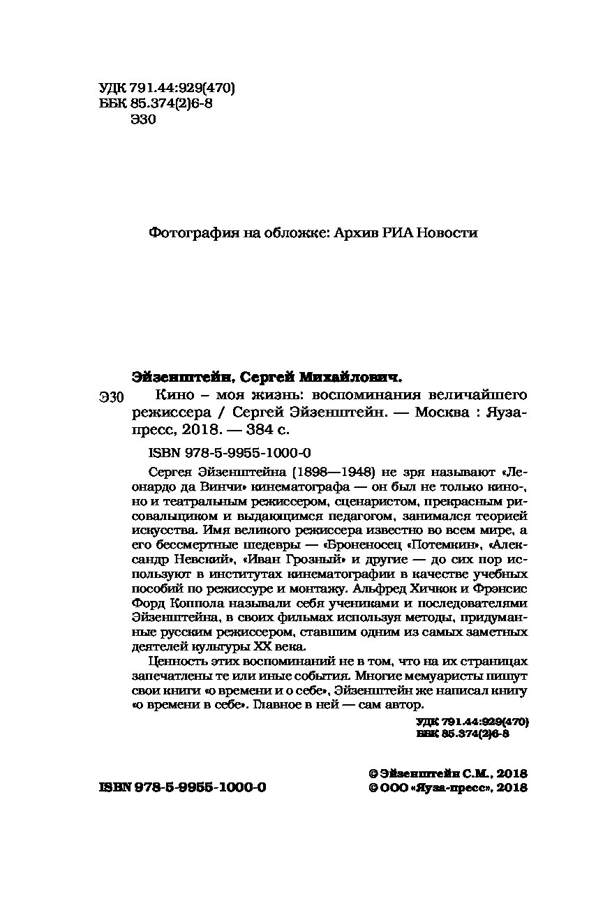—Книга «Кино - моя жизнь. Воспоминания величайшего режиссера» Эйзенштейн С.М.