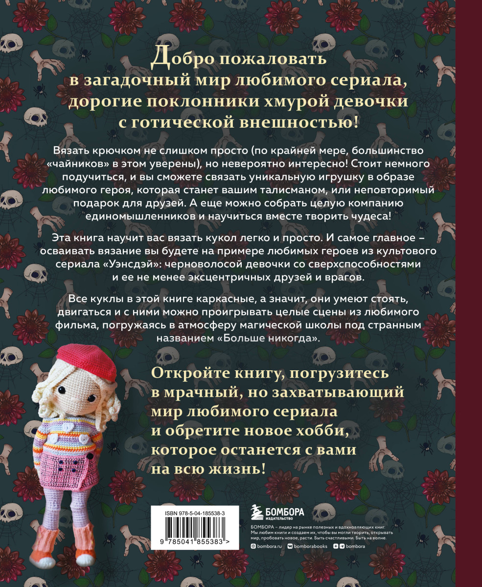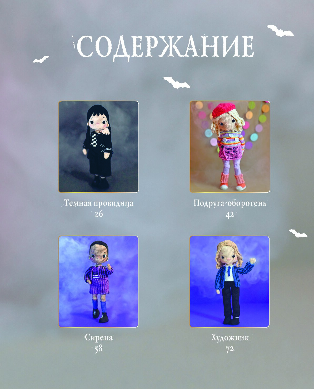 В ней вы найдете все, что нужно для того, чтобы научиться вязать каркасных кукол, которые умеют стоять, сидеть и принимать любые позы, легко и просто. А самое главное — вы будете осваивать вязание на примере любимых героев из сериала «Уэнсдэй»! Каждая кукла или артефакт — это уникальный образ, который вы создадите сами. А попутно проникнетесь атмосферой школы для «изгоев», побываете на Вороньем балу, познакомитесь с друзьями и недругами главной героини...