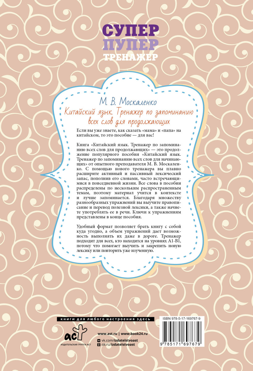 — «Китайский язык. Тренажер по запоминанию всех слов для продолжающих» Москаленко М.В.