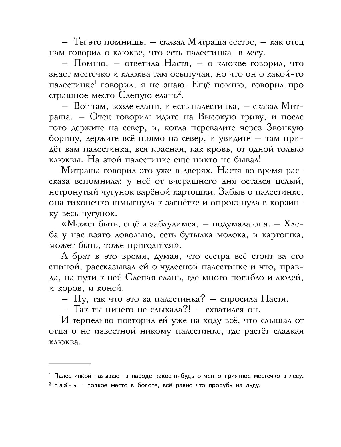 Михаил Пришвин не случайно назвал свою повесть «Кладовая солнца» сказкой-былью. Простой рассказ о том, как дети пошли в лес за ягодами, наполнен волшебными эпизодами. Спорят и борются между собой деревья, болтают непоседливые сороки, тоскует по ушедшему хозяину собака и где-то рыщет страшный волк — неуловимый Серый помещик. Но, конечно, как и положено в сказках, добро непременно победит.