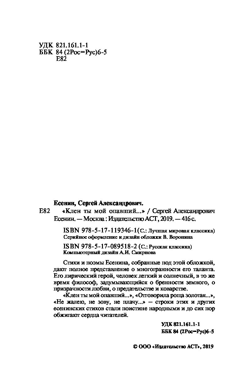 Книга «Клен ты мой опавший...» Есенин С.А.