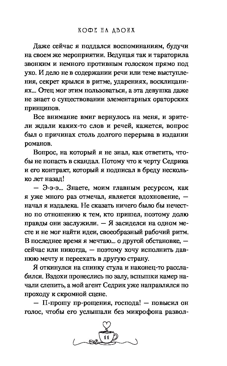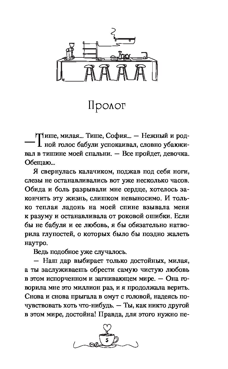 Однако все меняется, когда в «Love and Coffee» заходит Джейсон Бейкер — известный писатель и автор женских романов. Она ошеломлена его неожиданным и хмурым появлением, но еще больше тем, что не слышит его мысли. Совсем.