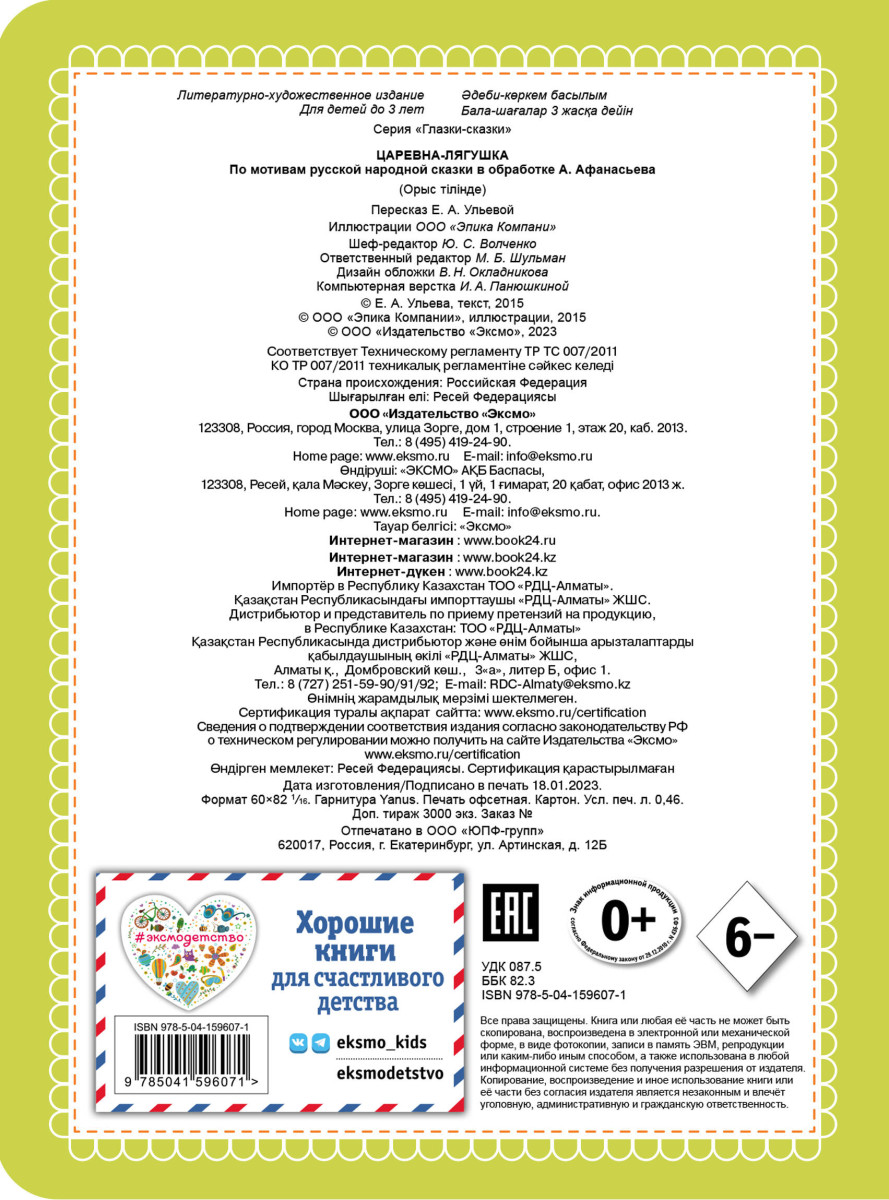 Русские народные сказки представлены в самом удобном для малышей формате — прочные картонные страницы, закруглённые края, красочные иллюстрации. А чтобы ребёнку было ещё интересней знакомиться с историей, на каждом развороте у героя есть подвижные пластиковые глазки.