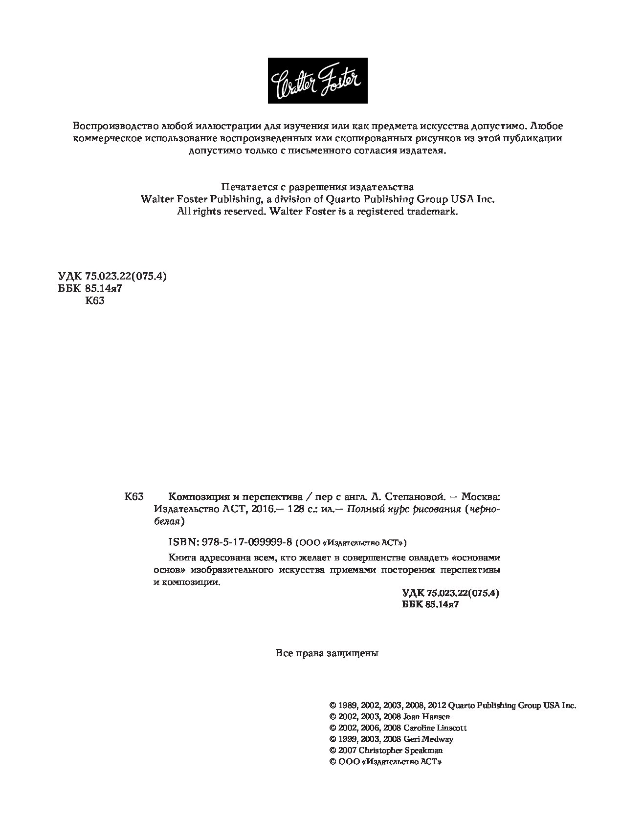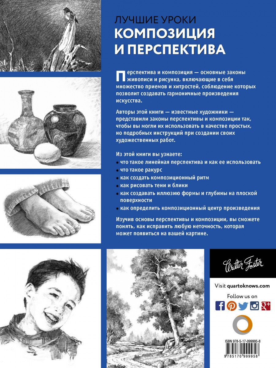 Издание-"Лучшие уроки. Композиция и перспектива"- одна из книг популярной серии  "Искусство рисования", авторы которой известные художники и преподаватели в доступной и наглядной форме изложили материал по основным законам живописи и рисунка-композиции и перспективе. Из этого самоучителя вы узнаете об истории перспективы и композиции, научитесь изображать композиции с одной, двумя и тремя точками схода, создавать композиционный ритм, освоите ракурс, и с легкостью будете рисовать  композиции с цветами, животными и фигурами людей. А глава упражения поможет закрепить полученные знания и обрести свой собственный неповторимый стиль