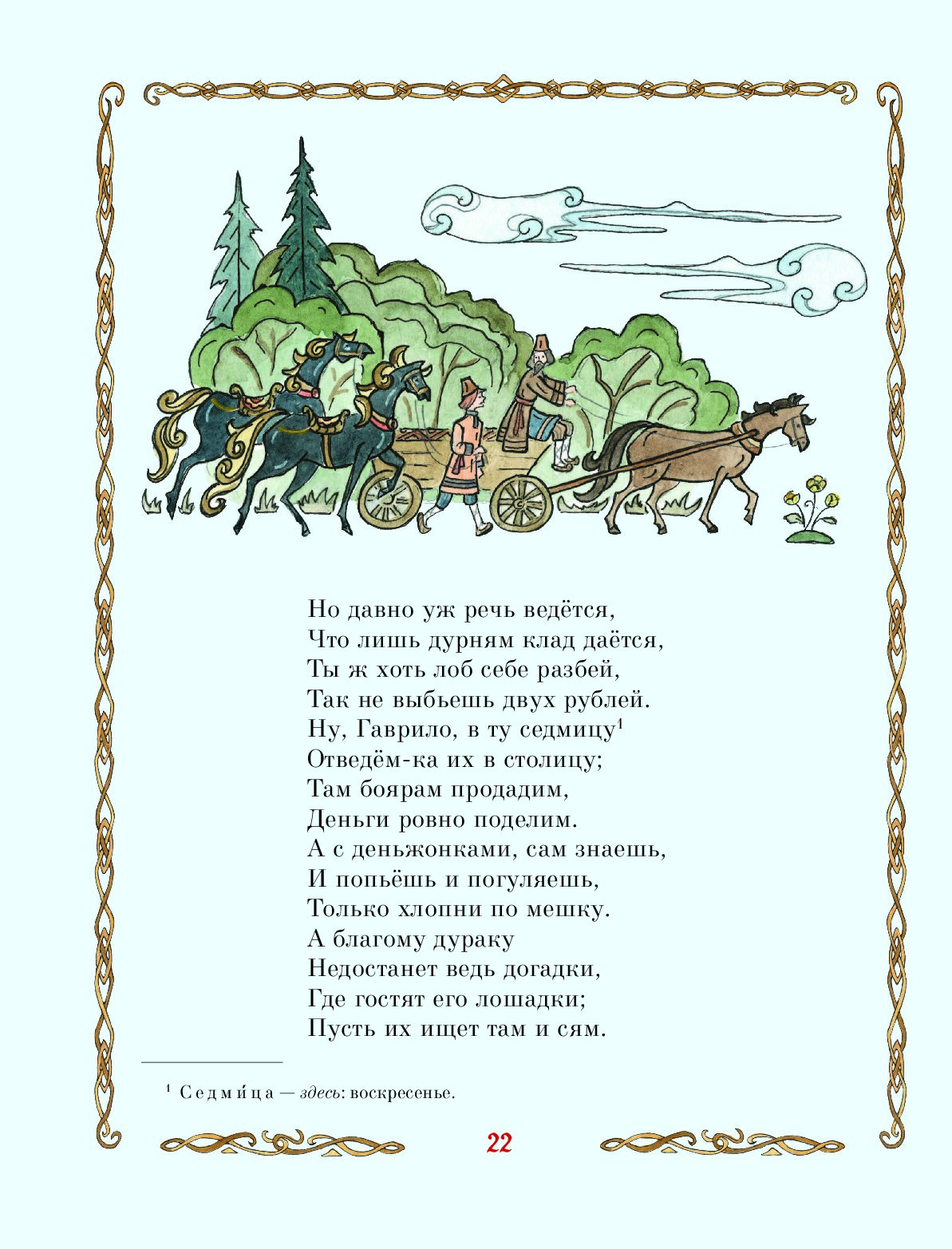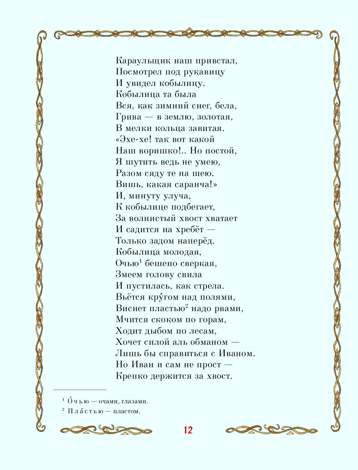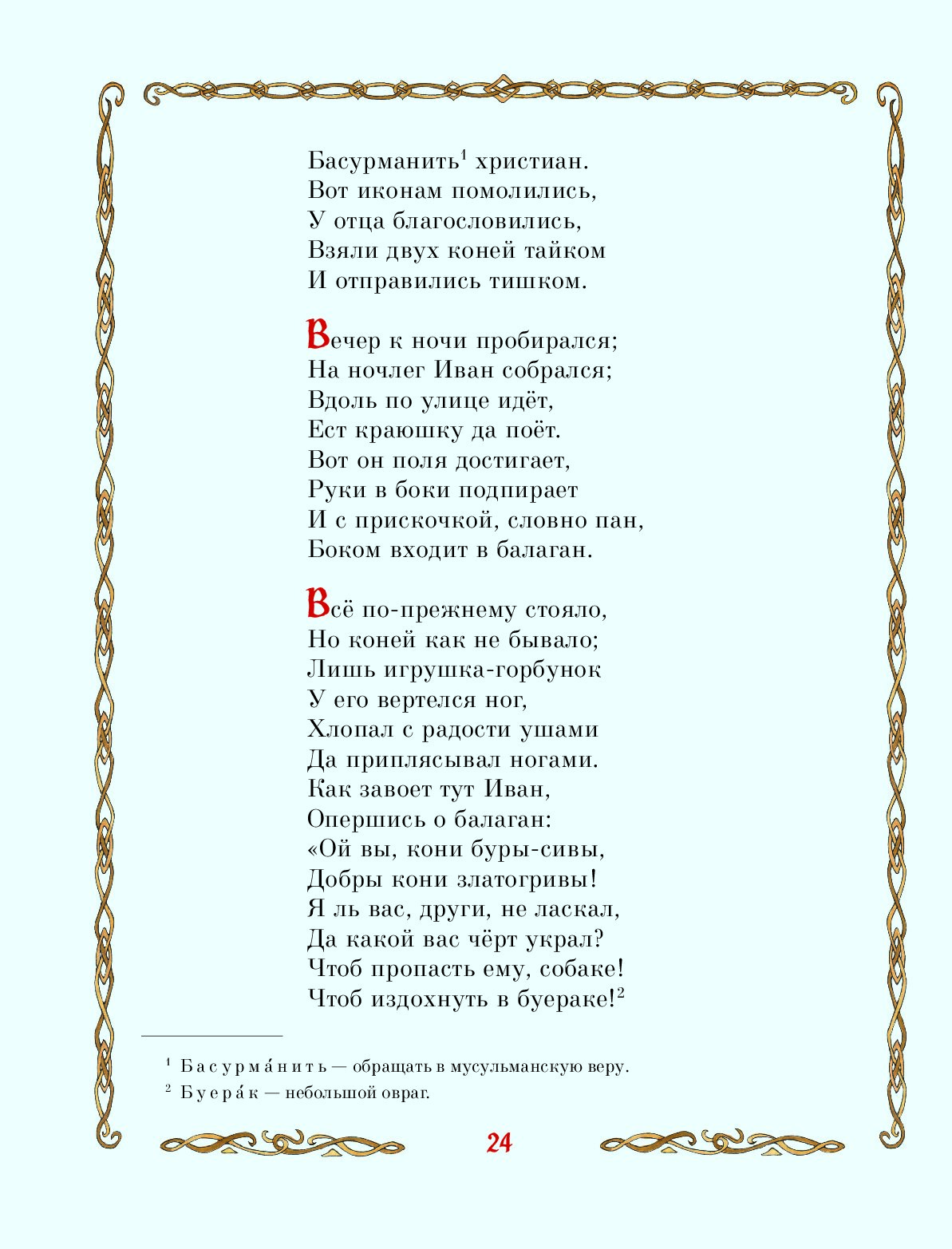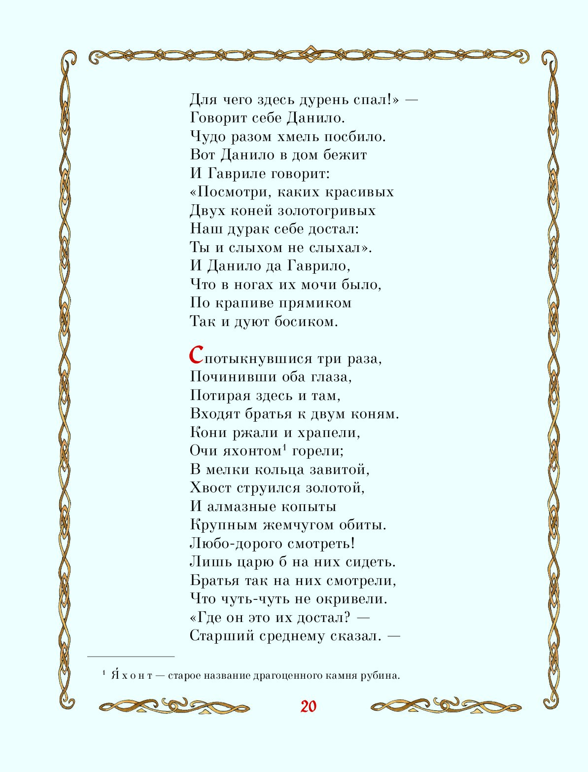 «Мне удалось попасть в народную жилу. Зазвенела, родная, и русское сердце отозвалось», — говорил Пётр Павлович Ершов о своей стихотворной сказке «Конёк-Горбунок». И в самом деле, мелодичное и напевное повествование с первой до последней строки пронизано «русским духом», а лёгкость строф ставит «Конька-Горбунка» на одну ступень со знаменитыми сказками А. С. Пушкина.